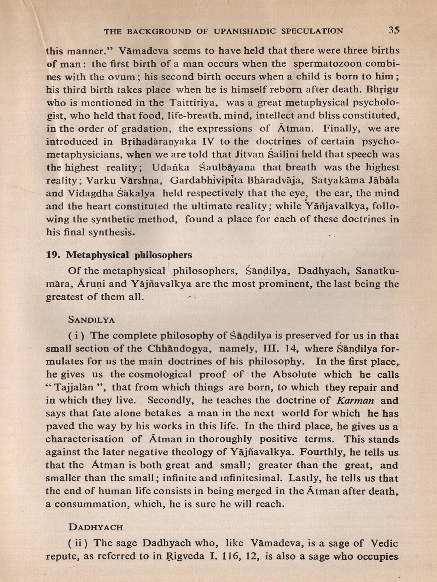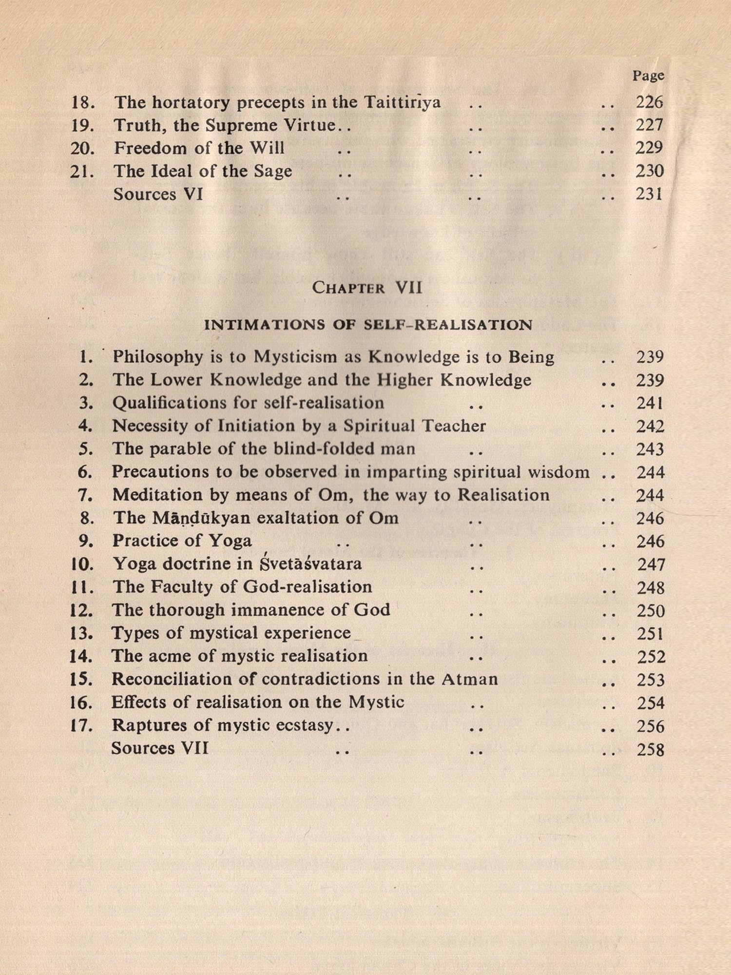 One who goes through the Preface to the first edition can easily see that mere scholarship is the least part of the book. Dr. Ranade was not only a thinker and a philosopher but also one who spent the most important part of his life in meditation and devout contemplation. The Atman, the ultimate Reality, was not something to be merely thought about or casually felt but something to be realized by constant meditation by one's whole being. Spiritual experience by the totality of one's being is the most important thing. While this way is enough and soul-fulfilling so far as an individual is concerned, out of sheer surfeit of joyful ecstacy one has to find channels of communication. Language and logic, at once lucid and clear, therefore have to be the common instruments for this purpose.