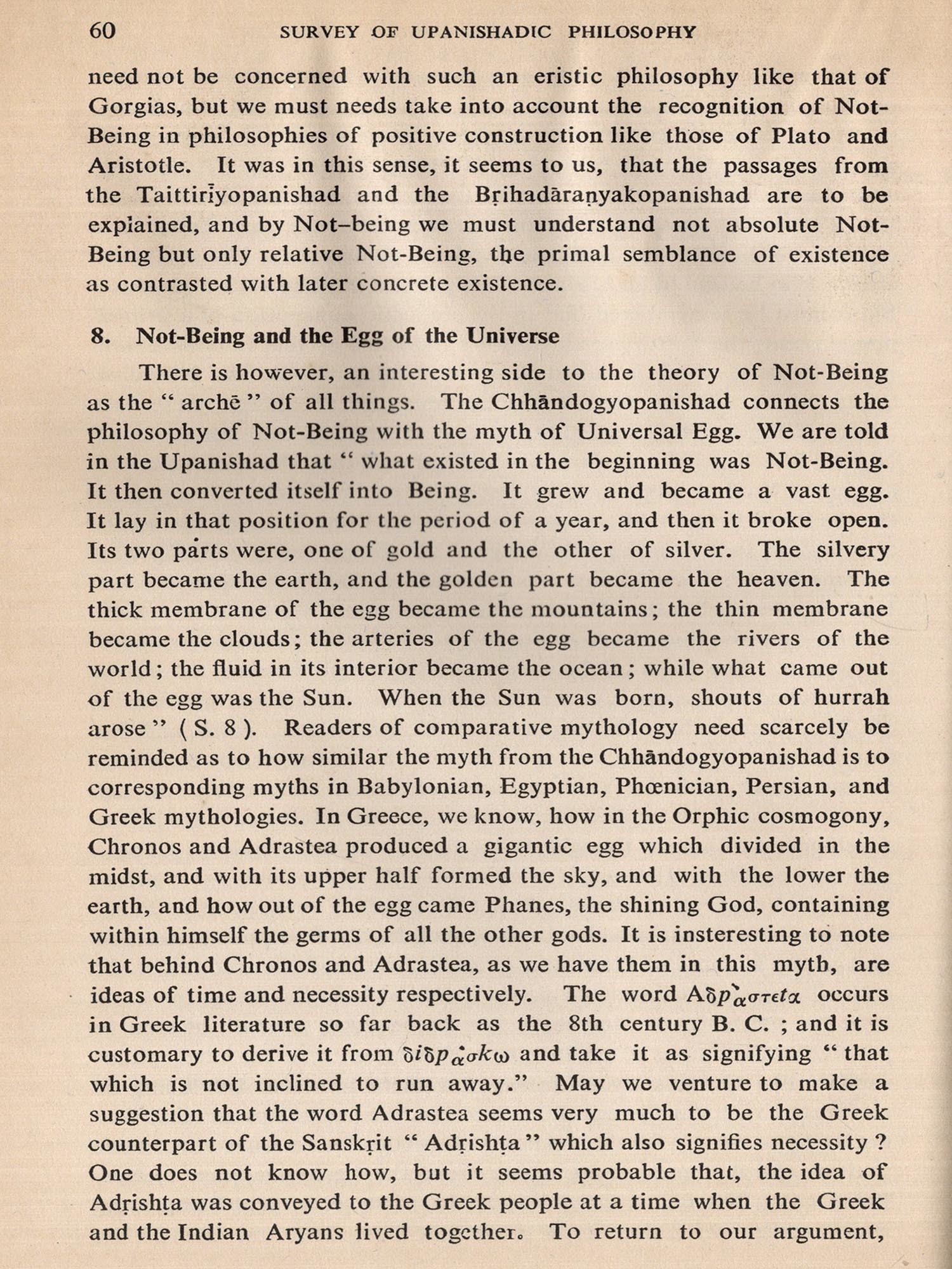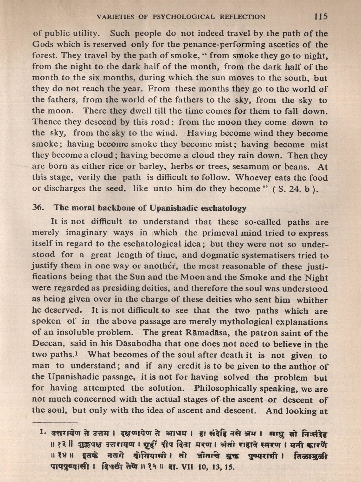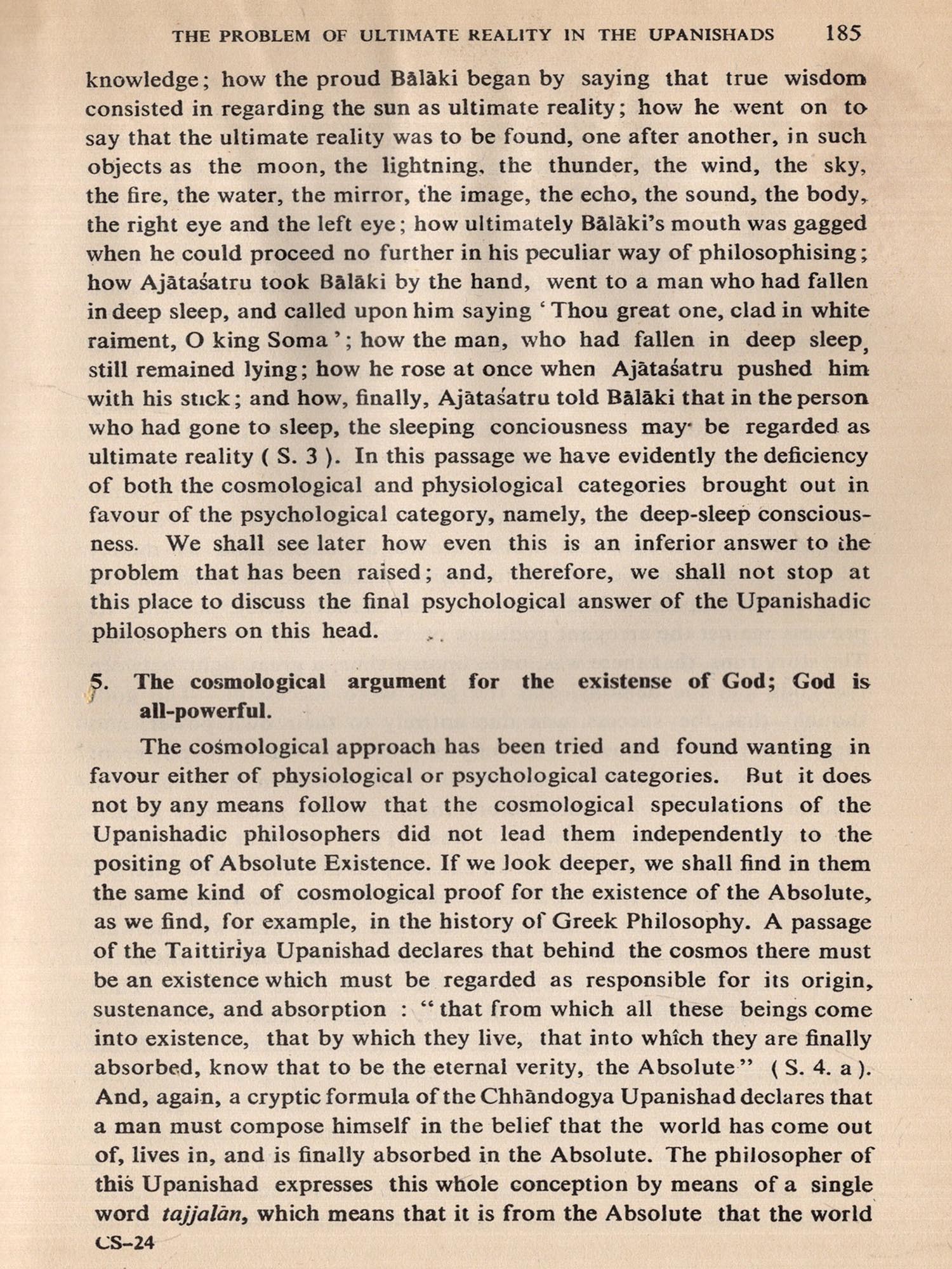 Dr. Ranade had the gift of analytical thinking as much as synthetical grasp of systems of thought which are reflected in the Upanishads. His aim is clear from the Preface he has written. If he wanted to be critical about superficial criticisms leveled at the Upanishads, he has shown how devastating he could be. If he wanted his book to be a comparative study, he could have pointed out parallelisms of thought and expression between Upanishadic sayings and the earliest Greek philosophers as well as the latest European or Western thinkers. He had scholarship enough for all that. But his aim was quite different. He set for himself as task which had never been attempted so thoroughly and in so profound and scientific a manner. His was a constructive approach as he puts it, and for that, in addition to equal mastery of Indian and European thought, a full grasp of the methodology of western presentation was necessary. Then to find the terminology to appropriately convey the Indian thought of the Upanishads was also a difficult task. It seems, however, that Dr. Ranade has eminently a difficult task. It seems, however, that Dr. Ranade has eminently succeeded and presented to the world in modern phrase and by modern method the ancient intuitional as well as logical thought of the Upanishads.