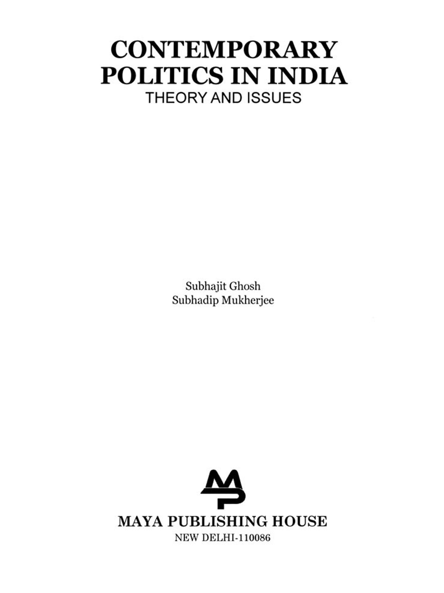 Since independence India has been functioning as a responsible democracy. The same has been appreciated by international community. It has successfully adapted to the challenging situations. Keeping in mind the journey of a country like India as a largest democracy some issues and incidents have raised before the government time to time. Describing in a constitutional manner some theoretical frame has been identified. It is needless to say that the policies taken by the government are also to be important to review the trends of the political scenario. Therefore, the book tilted Contemporary Politics in India: Theory and Issues is an attempted to re-justify the issues and also make some theoretical dimensions to think further more.