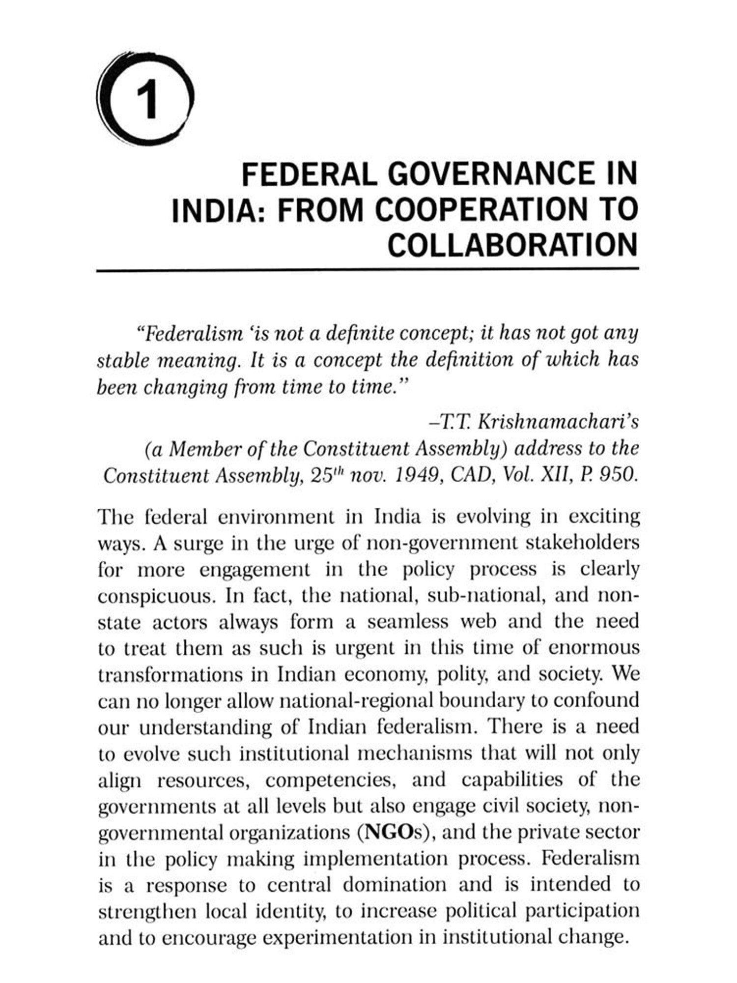 The institutional mechanisms for federal governance are contingent and susceptible to revision. Indian federal structure has been shifted from a parliamentary federalism to a considerably federalized system under a multi-party system with coalition government since 1989. India's political system is in constant flux. Parliamentary federalism is a unique hybrid system of governance that is context-driven. Based on both parliamentary practices and federal principles. This paper argues that in response to contemporary challenges, the federal governance structure in India requires transitional move. A directional shift is required from a cooperative model to a collaborative model of federal governance in view of various endogenous and exogenous imperatives of change, such as rising assertiveness of civil society; rising ""self awareness"" of regional and local political elites: globalization, privatization, and retreat of the central state; and increasing reliance of the national government on intergovernmental coordination mechanisms rather than centralized/hierarchical mechanisms for policy making and implementation. Thus, I reflect on the possibility of supplementing the federal practice in India (known for being ""federal in form and unitary in spirit"") with collaborative institutions and deliberative processes to achieve policy coordination. Institutional reforms are required to generate the right incentives for welfare enhancing, multi-stakeholder engagement and thereby improve the quality of democracy. The contemporary political and economic scenario in India is not conducive to a centralized decision making process. Thus, the central government would better achieve policy goals by drawing all the stakeholders into more collaborative interactions. Otherwise, the union government's unilateral policy pronouncements, given the escalating power and influence of the sub-national and non-state actors, will only produce confusion and chaos. Collaborative federalism is therefore not merely a structural device for distribution of powers between different layers of government; it is also an articulation of a basic philosophy accommodating diverse regional interests in the name of a nation.