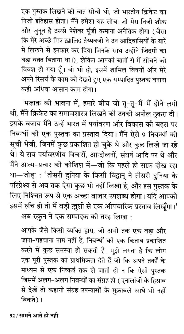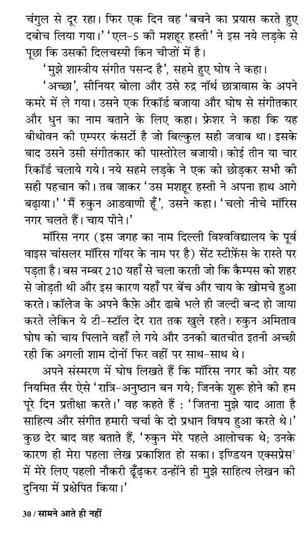 रुकुन और मैं 1970 के दशक में सेंट स्टीफेंस कॉलेज में समकालीन छात्र थे। वह तब तक गम्भीर पुस्तकों में डूब चुके थे जबकि मैं एक खिलाड़ी था जिसका बुद्धिजीवियों से कोई लेना-देना न था। उन दिनों उनके दिल में मेरे प्रति घृणा थी (वह स्वाभाविक रूप से भावी उपन्यासकार अमिताव घोष और दूसरे साहित्यिक सोच वाले लोगों का साथ पसन्द करते थे) लेकिन बाद में, जब मैंने अपनी शैक्षिक यात्रा में बदलाव किया और एक पी-एच.डी. भी की, हम परिचित हो गये और फिर मित्र बने। उन्होंने मेरी सभी शुरुआती किताबें प्रकाशित कीं और धीरे-धीरे मेरे एक इतिहासकार, एक जीवनी लेखक, एक क्रिकेट लेखक और एक निबन्धकार बनने में उनका महत्त्वपूर्ण योगदान रहा। यह रुकुन ही थे जिन्होंने मुझे ओ.यू.पी. को छोड़कर ट्रेड प्रेस में जाने को उत्साहित किया, जहाँ उन्हें लगता था कि जो पुस्तकें मैं लिखने लगा था, उनके साथ न्याय किया जाएगा। इस बीच उन्होंने खुद भी ओ.यू.पी. छोड़ दी और एक छोटे से हिमालयी क़स्बे से पर्मानेण्ट ब्लैक नाम की प्रेस चलाने लगे, जहाँ वे अपनी पत्नी (उपन्यासकार अनुराधा रॉय) और सड़क से उठाये गये कई कुत्तों की मण्डली के साथ रहते हैं।