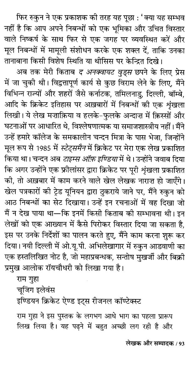 रामचन्द्र गुहा ने पर्यावरण, इतिहास और क्रिकेट पर अब तक दो दर्जन पुस्तकें लिखीं और सम्पादित की हैं। उनकी पहली पुस्तक द अनक्वाइट वुड्स 1989 में प्रकाशित हुई। उन्होंने महात्मा गांधी की सबसे प्रामाणिक जीवनी लिखी है जो दो भागों में प्रकाशित हुई। गुहा ने आजादी के बाद भारतीय राजनीति और समाज का ब्योरा (इण्डिया आफ्टर गांधी) और भारतीय क्रिकेट के सामाजिक इतिहास पर एक पुस्तक (ए कॉर्नर ऑफ़ ए फ़ॉरेनफ़ील्ड) लिखी है। अपने लेखन के लिए उन्हें कई पुरस्कारों से नवाज़ा गया है। वह स्टेनफ़ोर्ड, इण्डियन इंस्टीट्यूट ऑफ साइंस और लन्दन स्कूल ऑफ़ इकोनॉमिक्स में पढ़ा चुके हैं। गुहा को 2014 में येल विश्वविद्यालय (अमेरिका) ने मानविकी में मानद डॉक्टरेट से सम्मानित किया। यह पुस्तक लेखक का साहित्यिक संस्मरण है जो अपने सम्पादक के साथ उनके खट्टे-मीठे अनुभवों का समृद्ध संग्रह है।