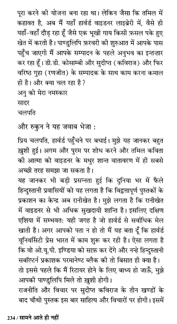 मैं ऐसा प्राणी हूँ कि अपनी दिनचर्या तय करने से लेकर साल भर की यात्राओं का कैलेण्डर बनाने तक, मेरा सब कुछ आदतों के हिसाब से ही तय होता है। वर्ष 1995 में बंगलौर आकर बस जाने के बाद, मैं नेहरू मेमोरियल म्यूज़ियम और लाइब्रेरी' (एन.एम.एम.एल.) के समृद्ध अभिलेखागार में शोध के लिए हर साल चार बार देश की राजधानी दिल्ली जाता हूँ। दिल्ली में ये चार यात्राएँ मैं जनवरी, अप्रैल, सितम्बर और नवम्बर में करता हूँ, ताकि गर्मी और चिपचिपे मानसून की मार न झेलनी पड़े। कोई हफ़्ते-दस दिन के लिए मैं एन.एम.एम.एल. के आसपास किसी बोर्डिंग हाउस में ठहरता हूँ जहाँ से पुस्तकालय पैदल जा सकूँ। लाइब्रेरी खुलने के साथ ही हर रोज सुबह 9 बजे मैं पाण्डुलिपि कक्ष में पहुँचकर खिड़की के पास एक डेस्क पर क़ब्ज़ा कर लेता हूँ, अपनी फ़ाइलें मँगाता हूँ। एक बार भोजन के लिए और दो बार चाय के लिए उठने के अलावा मैं पूरे दिन गहन शोध करता हूँ और अगली सुबह फिर से यहाँ आ जाता हूँ। मैंने दुनिया भर के दर्जनों अभिलेखागारों में काम किया है, लेकिन शोध करने के लिए एन.एम.एम.एल. हमेशा से मेरी पसन्दीदा जगह रही है।