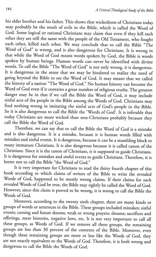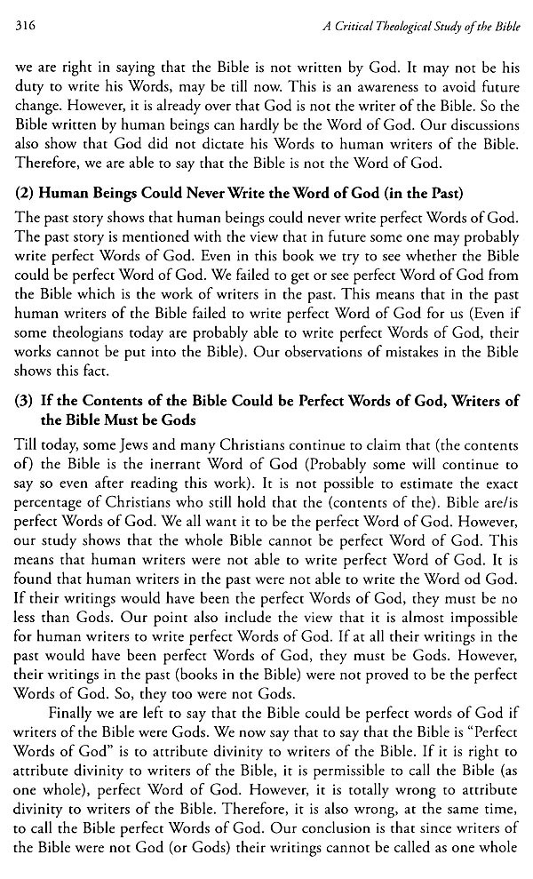 I suppose that this work will totally change Christians' attitude to the Bible. Christians are now supposed to change their view of the Bible as in-errant Word of God to accept the view that the Bible as a whole is human words about God and his relation to his creation. I personally thank the publisher(s) for the work of printing and publishing this work of mine. I hope that the ideas stated in the book may influence Christians in the whole world for betterment.