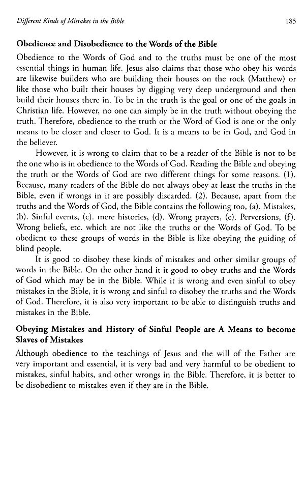 The first part concerns the ancient belief in the inerrancy of the Bible as a whole. The second part discusses the different kinds of mistakes in the Bible. Some examples include scientific errors and incorrect historical records. The third section presents lessons related to the study of the Bible. Some examples include a study of God's revelation in the Old Testament and the classification of groups of words in the Bible. Some distinctive findings are as follows: Based on the classification of different groups of words in the Bible, each group of words is found to have its own authority, which differs from that of others. The permanent value of the Bible rests on the teachings of Jesus and other writings that align with the words of God.
