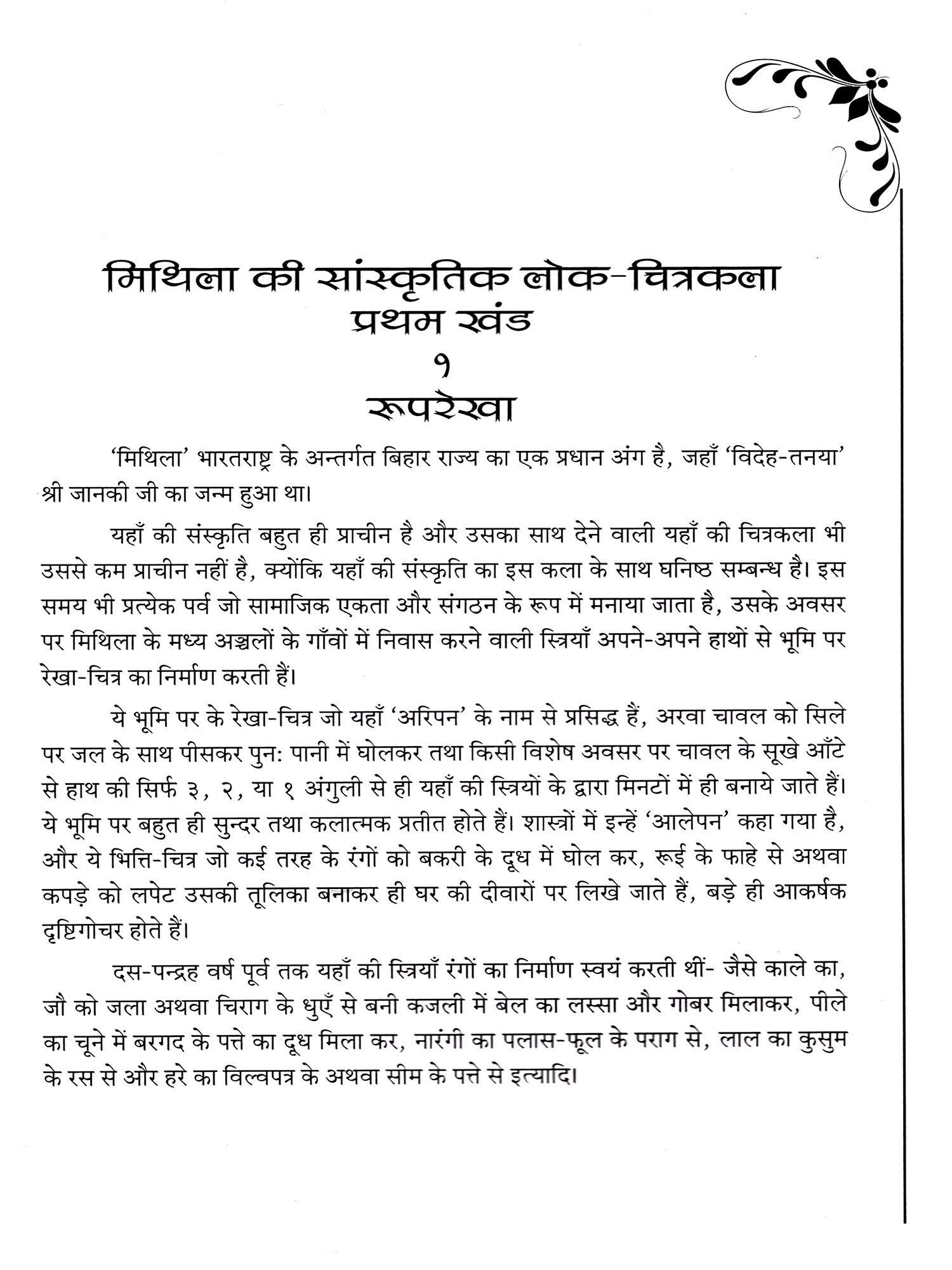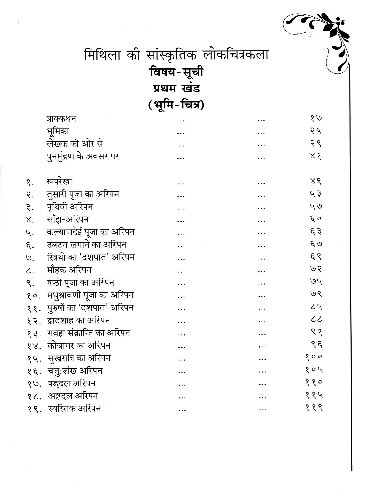 श्री लक्ष्मीनाथ झा के द्वारा संगृहीत मैथिल लोकचित्रकला के नमूनों का यह प्रकाशन हमारे देश की सद्यः प्रस्फुटित सांस्कृतिक चेतना में एक नये मोड़ का परिचायक है।