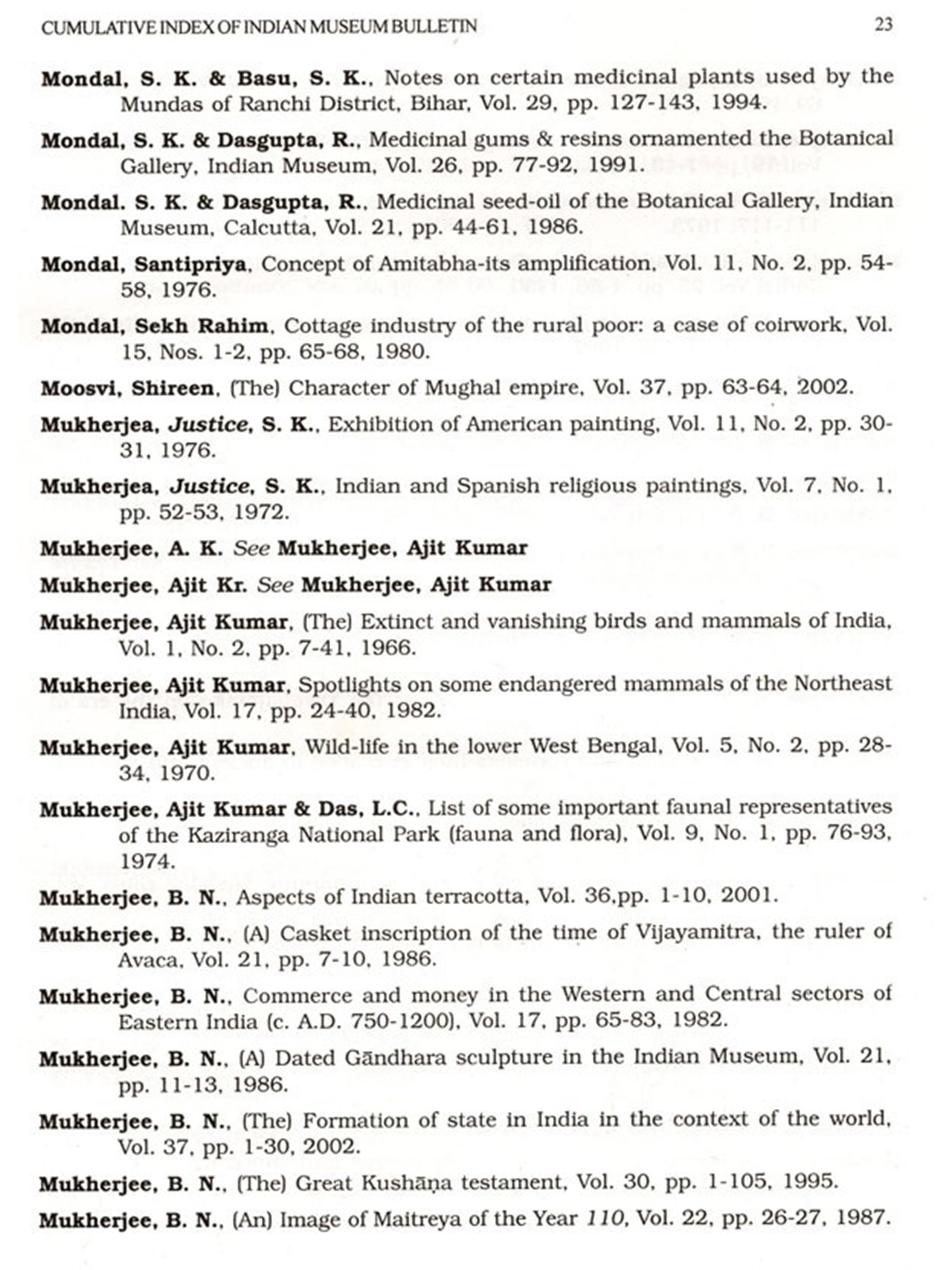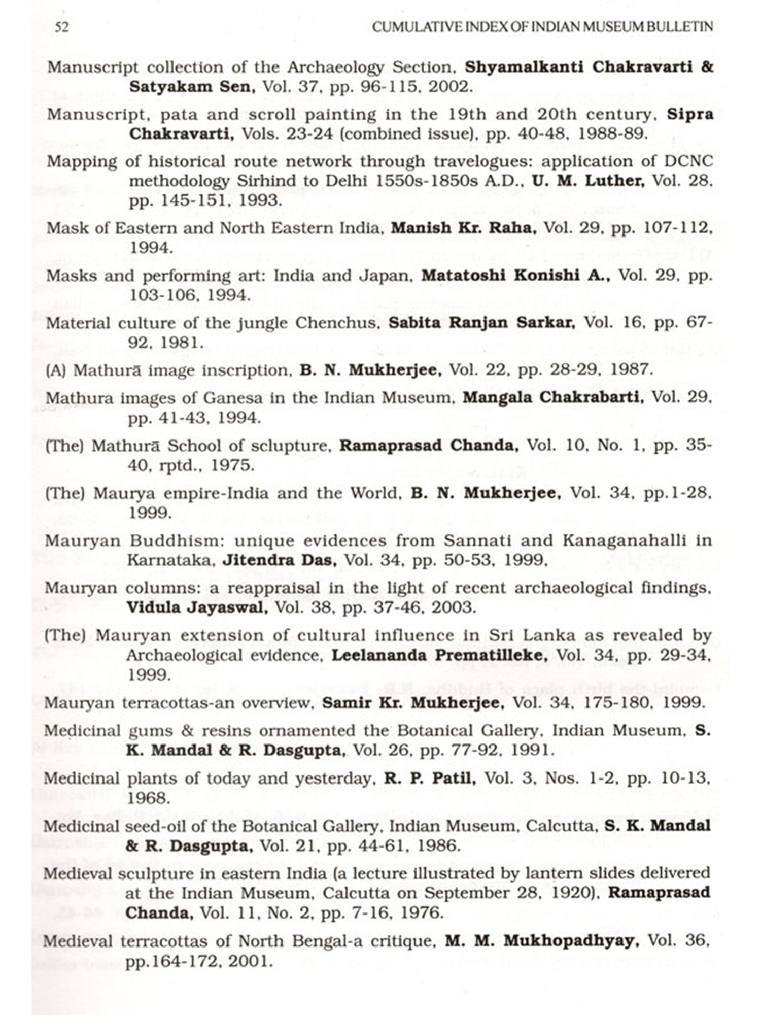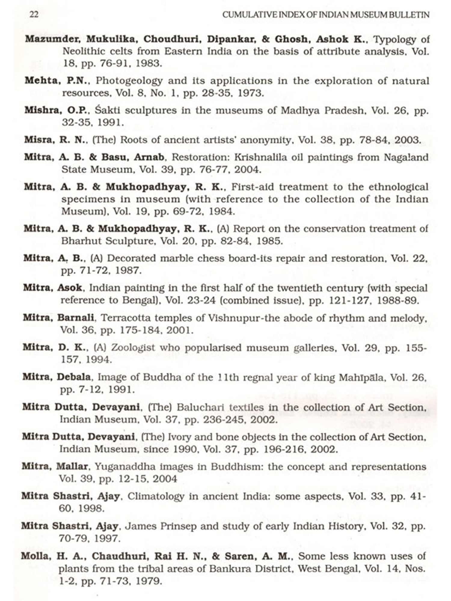 Cumulative Index of Indian Museum Bulletin Vol. 1 to 39 (1966-2004)