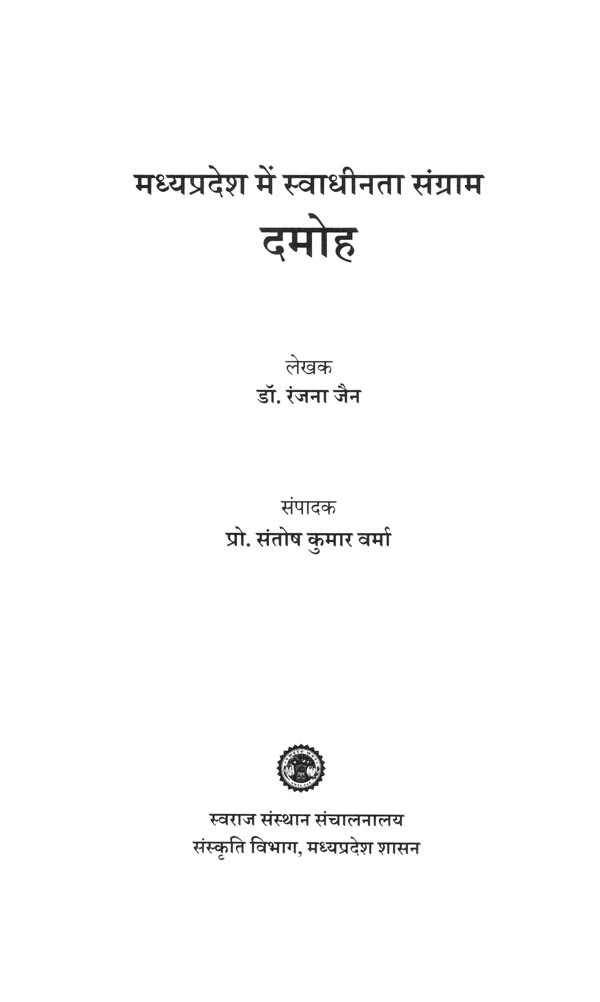 प्रस्तुत पुस्तक 'मध्यप्रदेश में स्वाधीनता संग्राम-दमोह', स्वराज संस्थान संचालनालय की महत्वाकांक्षी परियोजना का परिणाम है जिसके अंतर्गत मध्यप्रदेश के समस्त जिलों के स्वाधीनता आंदोलन के इतिहास पर विस्तृत शोधकार्य कर उन्हें प्रकाशित किया जा रहा है। परियोजना से जुड़े विद्वतजनों तथा स्वराज संस्थान संचालनालय के सहयोगियों का हृदय से आभार व्यक्त करता हूँ।