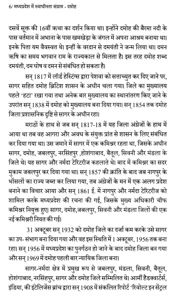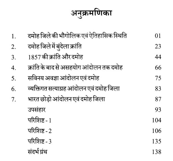 विश्वास है कि यह पुस्तक दमोह जिले के स्वाधीनता संग्राम के अल्पज्ञात पक्षों, गुमनाम स्वातंत्र्य वीरों के कृतित्व पर प्रकाश डालने में सफल सिद्ध होने के साथ जनमानस तक स्वतंत्रता आंदोलन से जुड़े तथ्यों, विचारों एवं कार्यों का भी प्रचार-प्रसार करेगी।