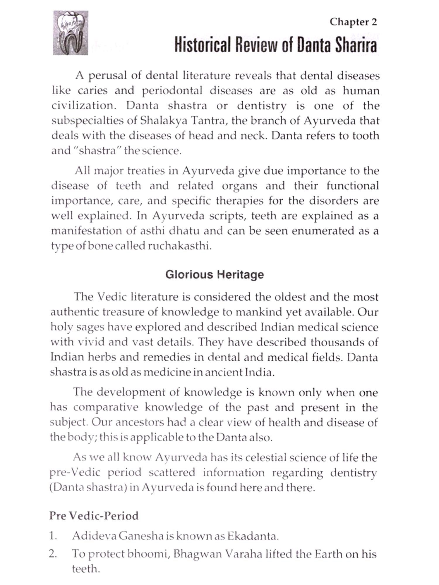 Ayurveda, being an exceptional system of knowledge compilation, Ayurveda anatomy (Sharira Rachana) plays an utmost important role in diagnosing and therapeutic procedures. Henceforth, the anatomy of dental structures is far the most essential in dentistry. Ayurveda Shalakya Tantra elaborately discusses numerous dental practices including diagnosis and management of dental disorders.