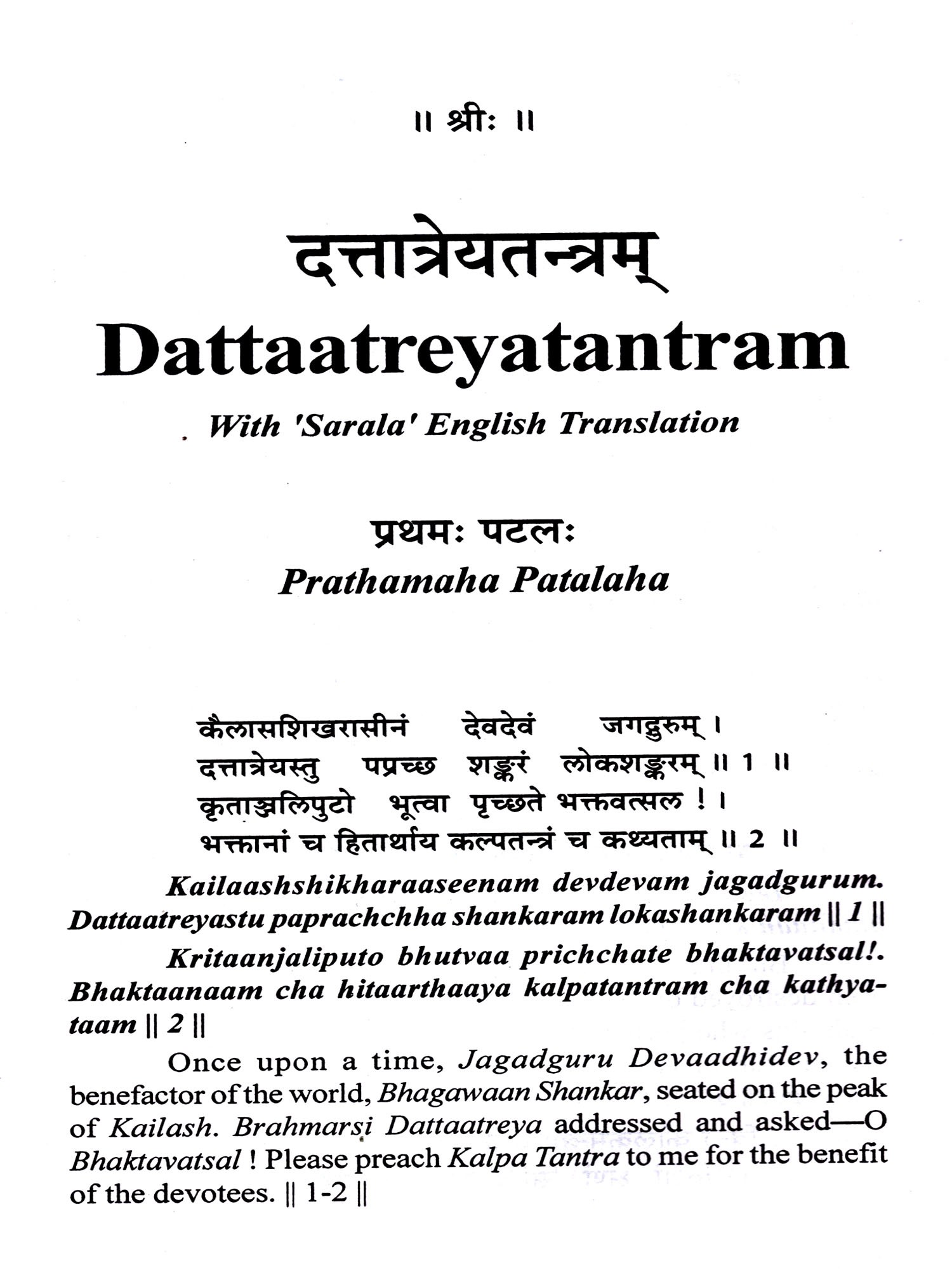 Many friends from India and abroad suggested me that the Shrii Dattaatreya Tantram should be brought out in English translation so it can reach a large number of peoples.