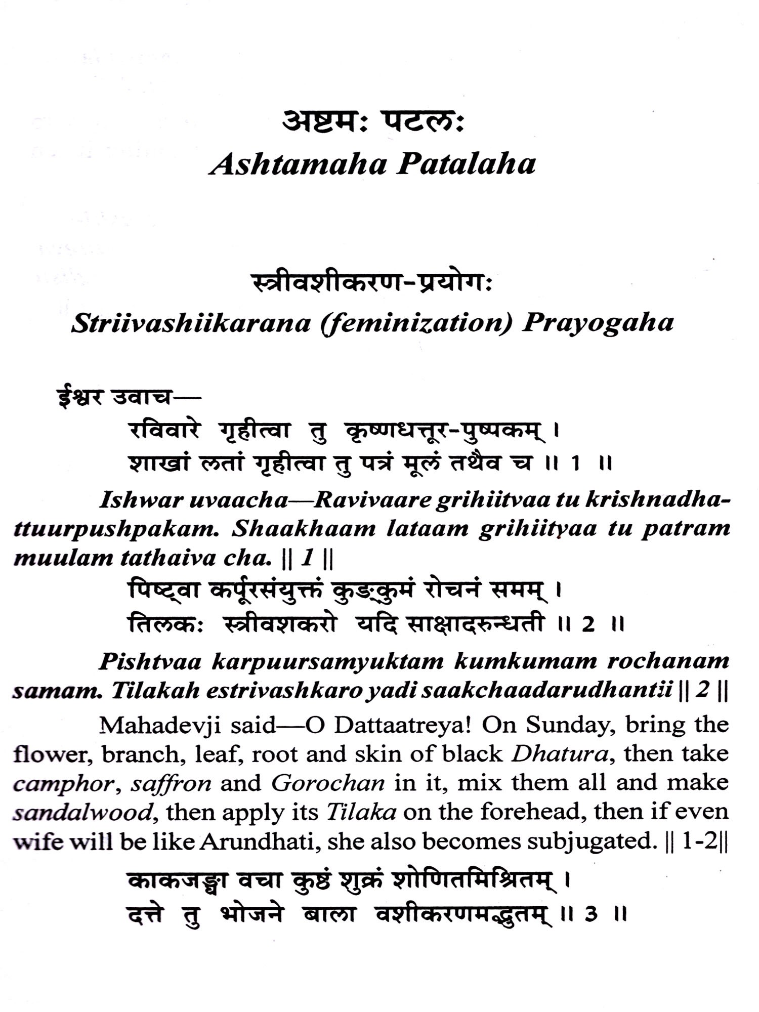 My humble suggestation is to try to do all these mentioned Prayoga discribed in this book under the supervision and guidance of able instructor (Samartha Guru), who is able to handle any mishappening circumstances. By worshipping the above various Prayoga mentioned in this book ones becomes auspicious, competent and get liberated from the world.