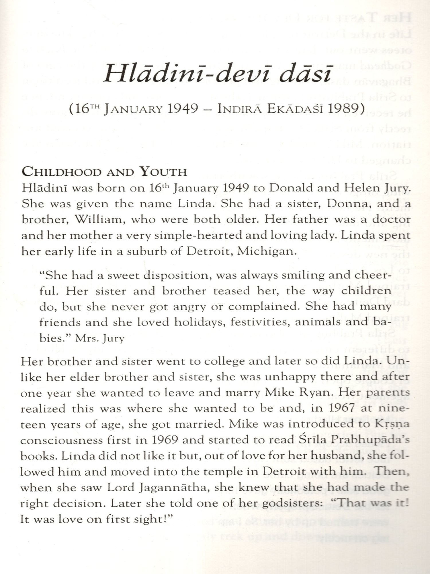 The Vaisnavis featured in this book reflect the wide range of backgrounds and situations people come from to Krsna conscious-ness. More importantly, it shows how any material situation is not a hindrance to receiving the full causeless and unlimited mercy of Sri Caitanya Mahaprabhu.