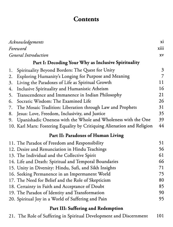 Far from being an eclectic compilation, this book presents a thoughtful and integrative approach to spirituality, inviting readers to engage deeply with each teaching and personalise the insights that resonate. It acknowledges life's paradoxes: the coexistence of suffering and joy, the challenge of embracing both freedom and responsibility, and the need to live meaningfully in our volatile, uncertain, complex and ambiguous world.