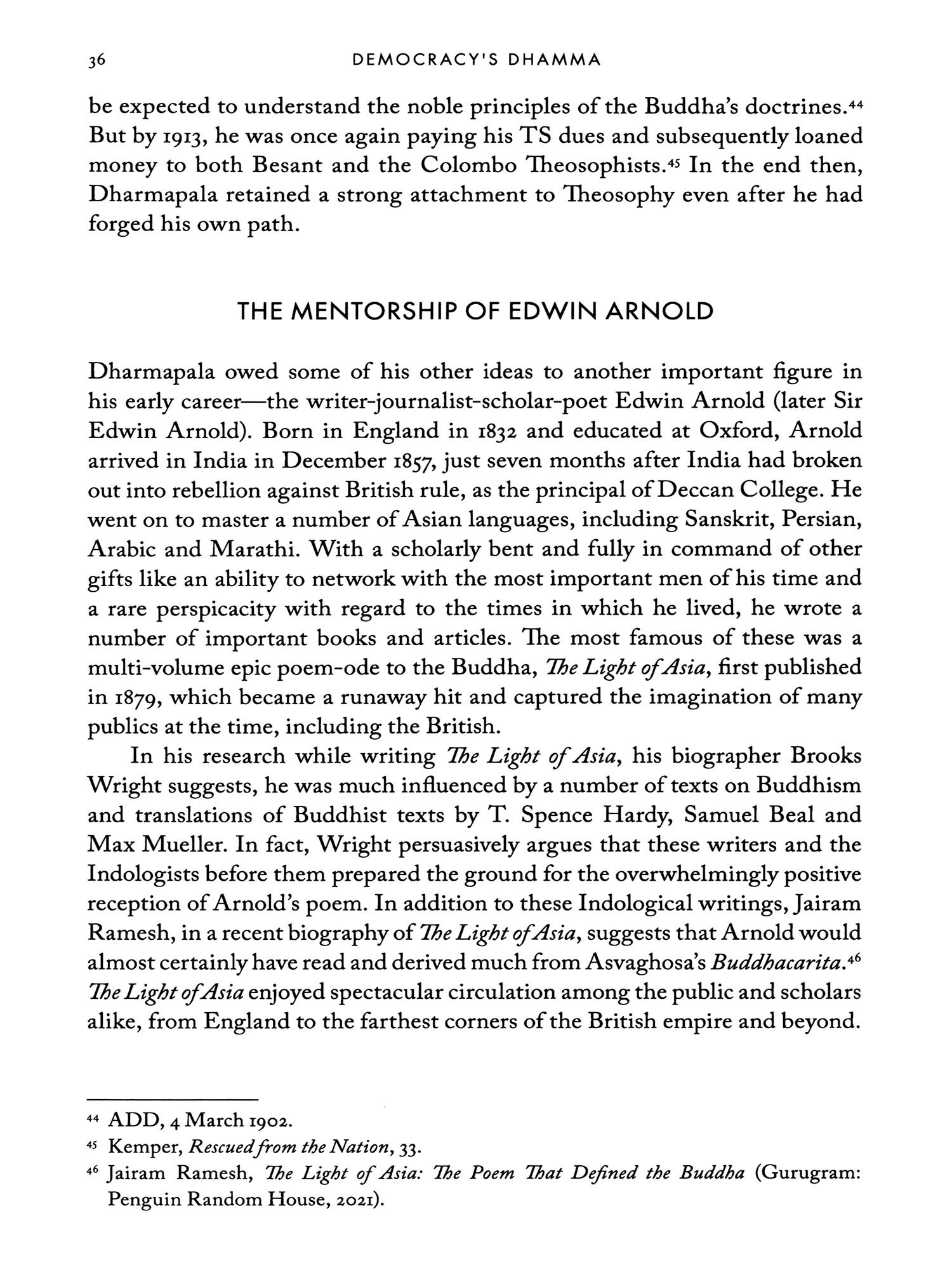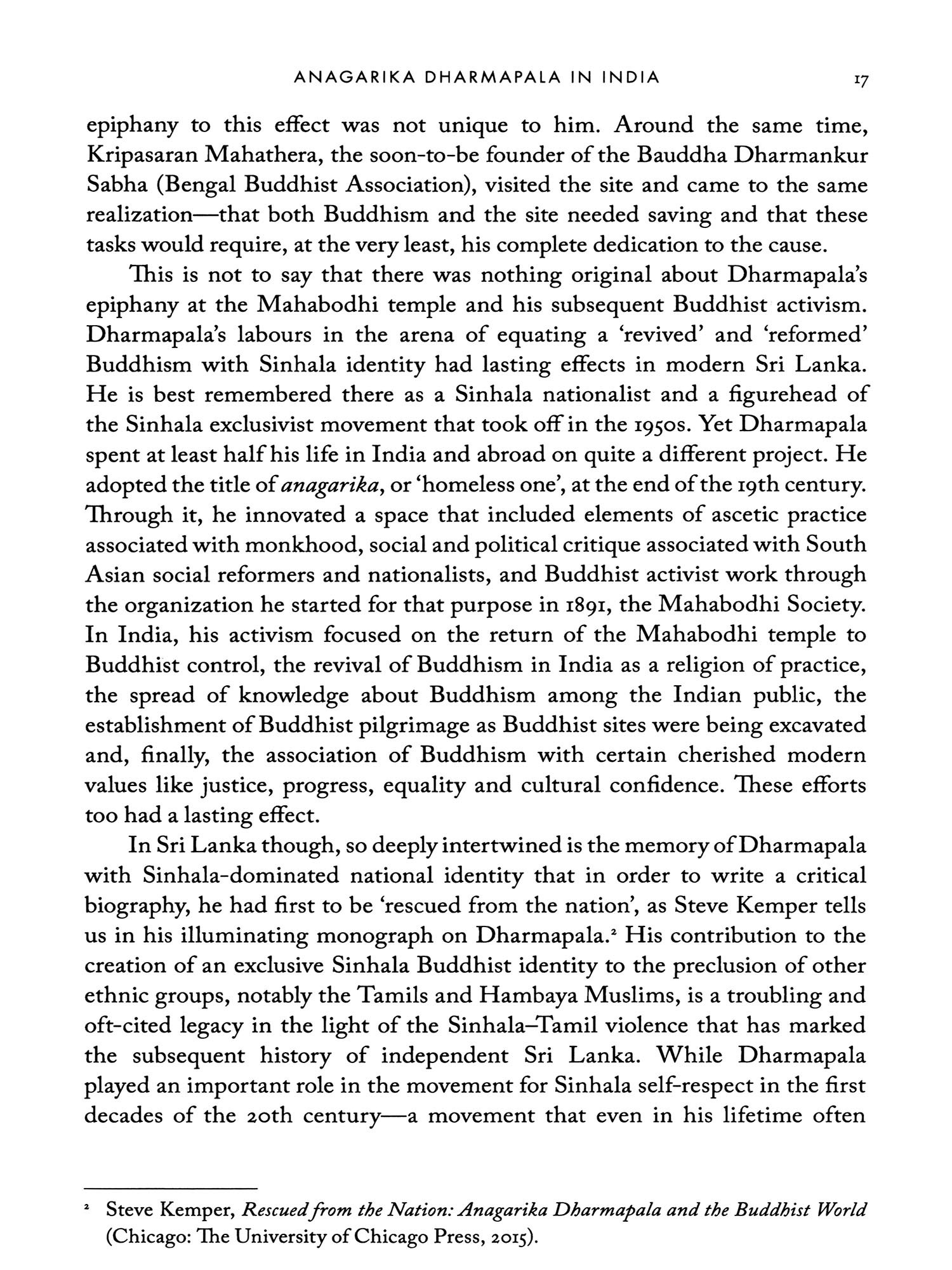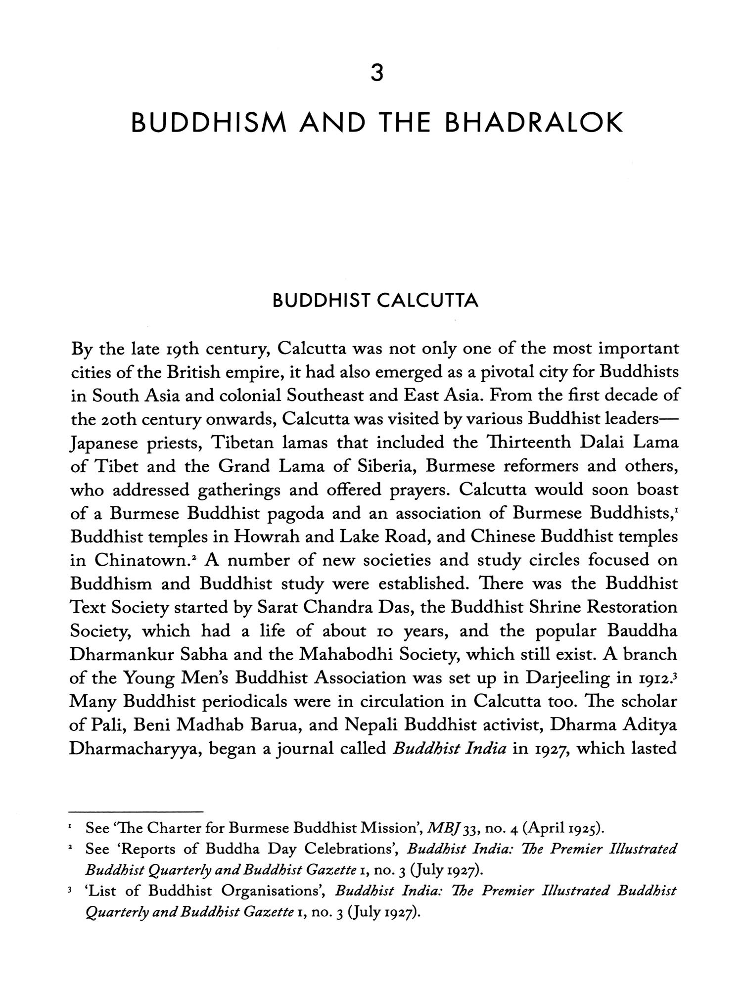 In the following pages, I present to you an intellectual genealogy of Buddhism in modern India. Like all modern religions on the subcontinent, Buddhism too was reimagined and reconfigured in the 19th and 20th centuries in the context of British colonialism. In the historiography of modern South Asia, Hinduism and Islam have got the lion's share of attention. Buddhism's story is unique for the extent of its re-imagination in India, where its followers were insignificant in number and politically marginalized. A host of British and European orientalists, archaeologists and Indologists are credited with discovering 'Buddhism' and India's Buddhist heritage in this period. And yet Indian and more broadly South and Southeast Asian activists, pilgrims, politicians, bhikkhus (Buddhist monks and mendicants) and scholars contributed immensely to the re-emergence of Buddhism and grappled with Buddhist ideas and history .
