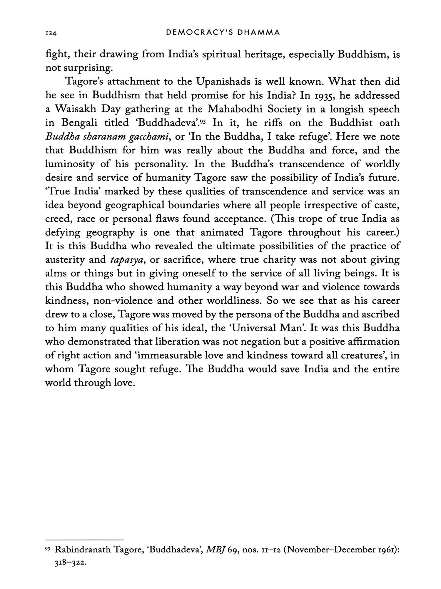 In India of the 1940s and 1950s, democracy was itself the revolution. After two centuries of oppressive and unjust colonial rule and thousands of years of monarchical rule before that, the makers and thinkers of the newly minted republic thought democracy to be the appropriate political form with the possibility of peaceful revolutionary change embodied within it. After the tremendous violence of the Second World War, the spectre of the atom bombs in Japan and the brutal massacres accompanying the partition of the Indian colony into India and Pakistan, many felt it necessary to enact a peaceful revolution. Democracy was to be the means and end of that peaceful revolution. In order, however, to make sense of and to justify what seemed at first glance to be an imported political form, Indian thinkers dug deep to find native resources that could help the process of democratization of the polity. A striking solution was located in that ancient faith that was not quite separate from the universe of Hindu thought but which contained an attractive history of subversion and dissent against upper-caste Vedic religion, that heterodox 6th-century BCE sect of Buddhism. In the last century of British rule, the struggle to produce an appropriate Buddhism for a modern nation reveals a secret history undergirding the rise of the republic itself in 1950. Buddhism played its own role in the making of modern India just as both Buddhism and India were in-the-making.
