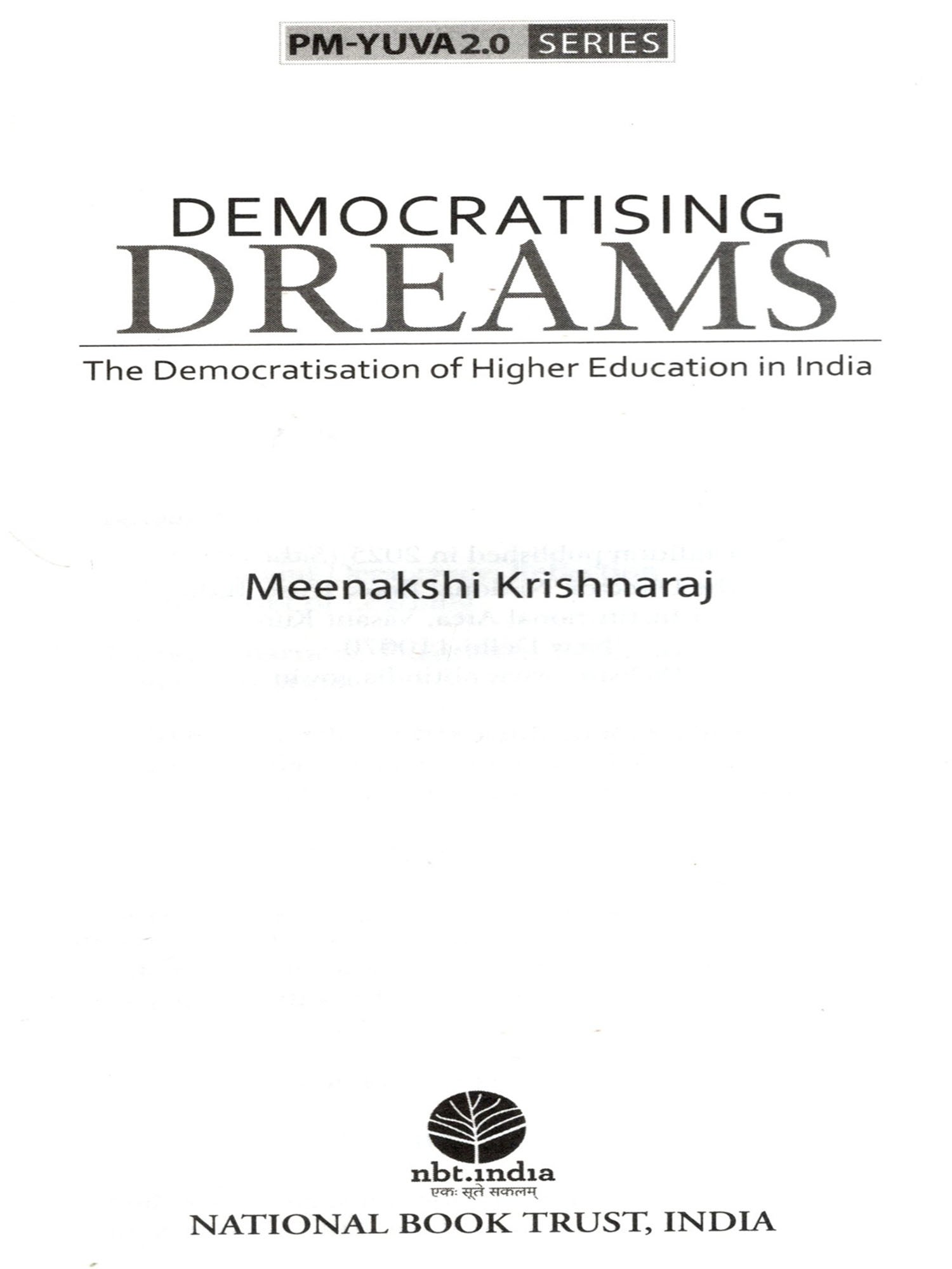 This book, Democratising Dreams: The Democratisation of Higher Education in India, is a reflection on how education, when aligned with the principles of democracy, can empower individuals to realise their potential and, in doing so, transform societies.