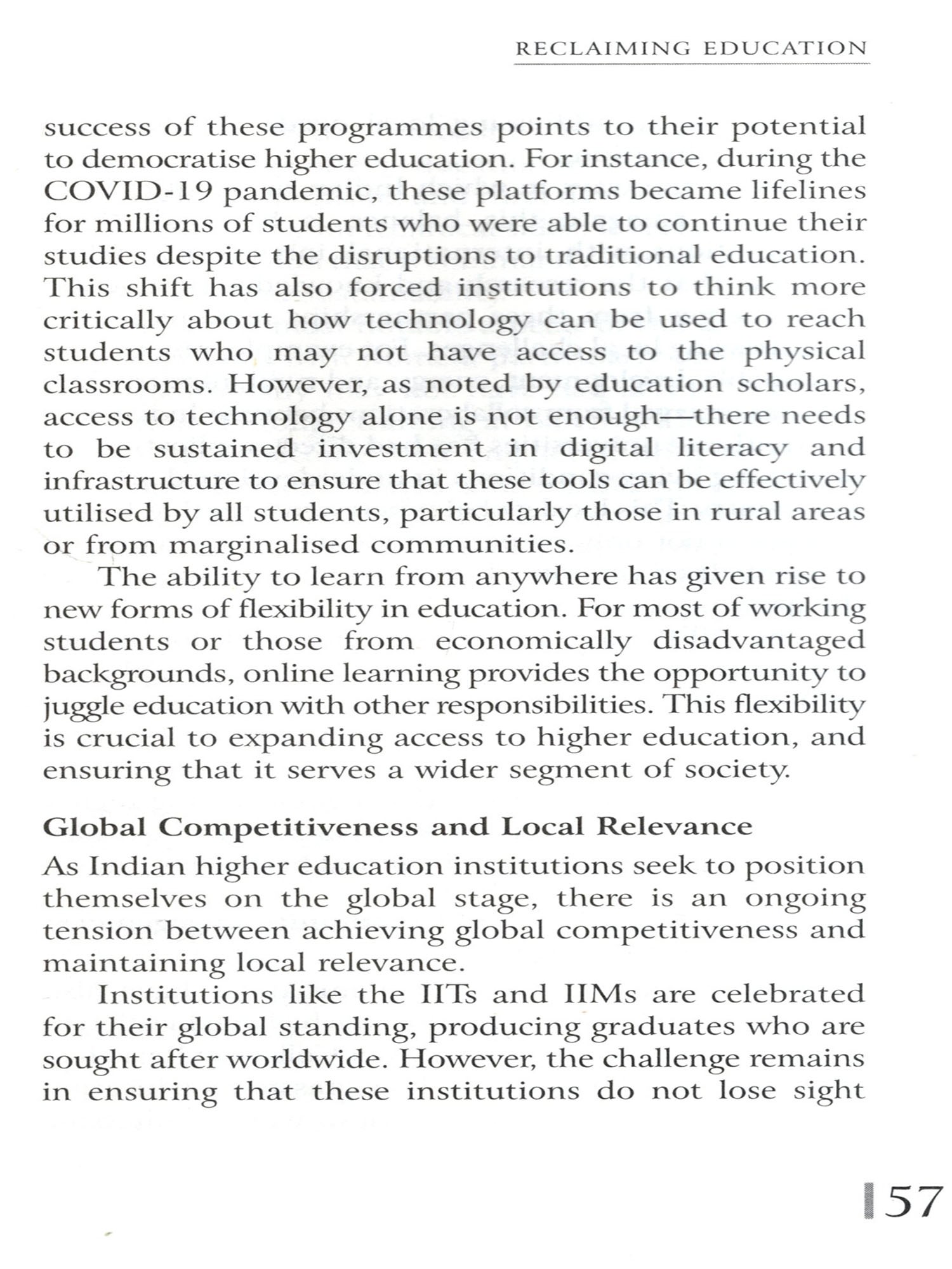 Democratising education includes a broader array of freedoms for individuals’ choices in learning pathways, accessibility for all, the nurturing of creativity, and the dismantling of barriers that hinder individual potential. It is about breaking the chains of traditional, one-size-fits-all education and making room for flexibility, innovation, and personalised growth. In India, where socioeconomic disparities significantly influence educational outcomes, this democratisation is both urgent and transformative.