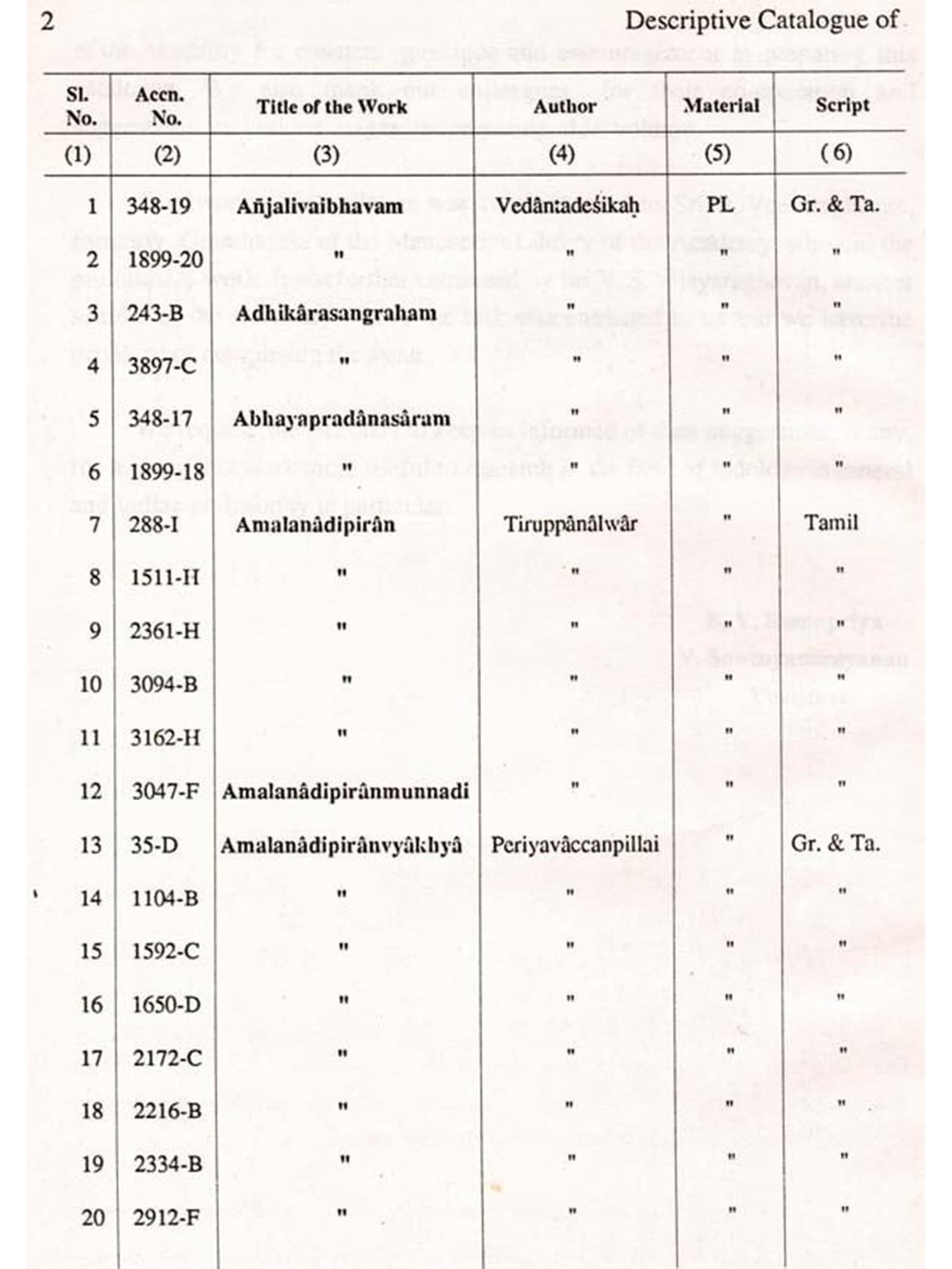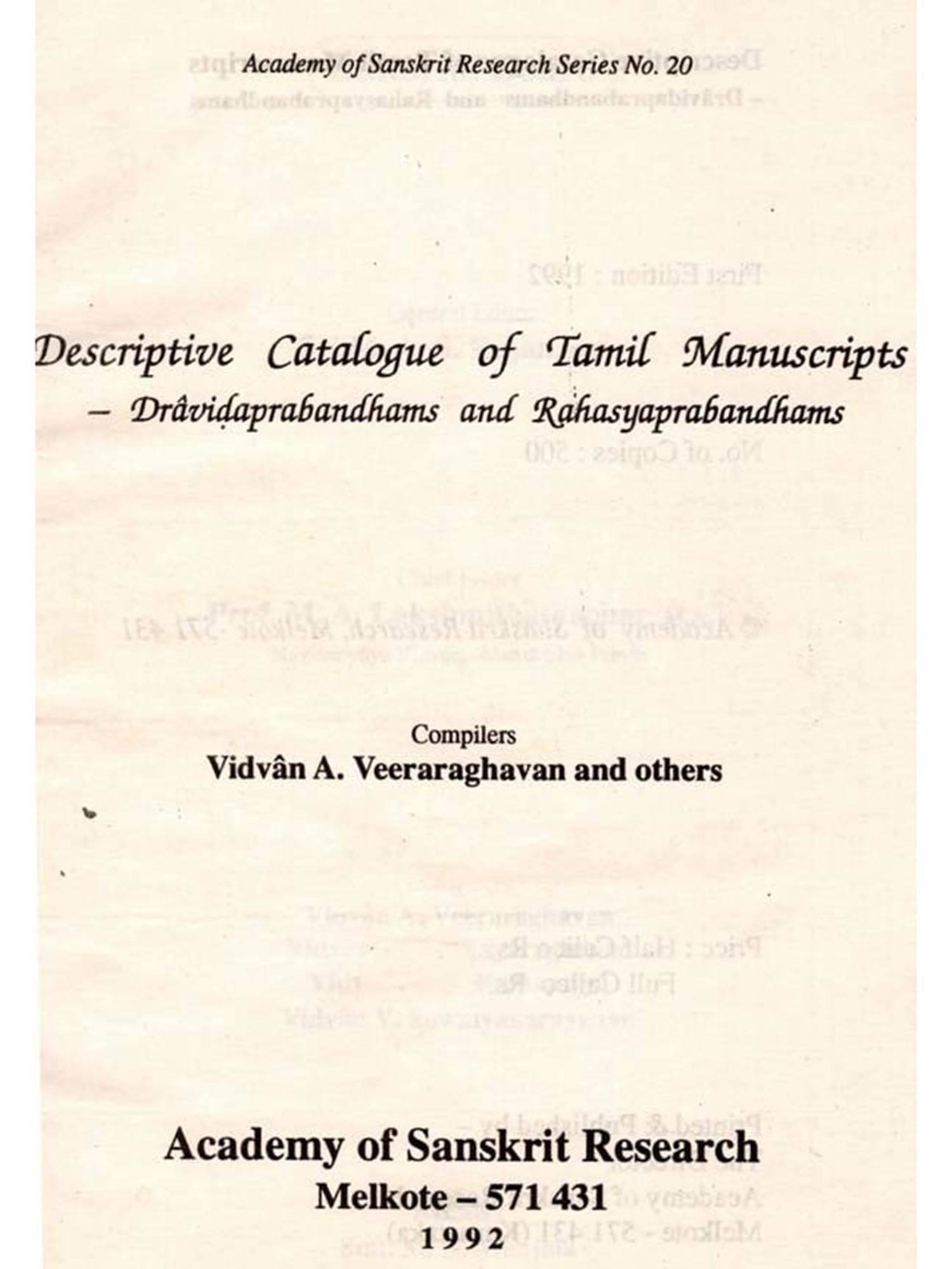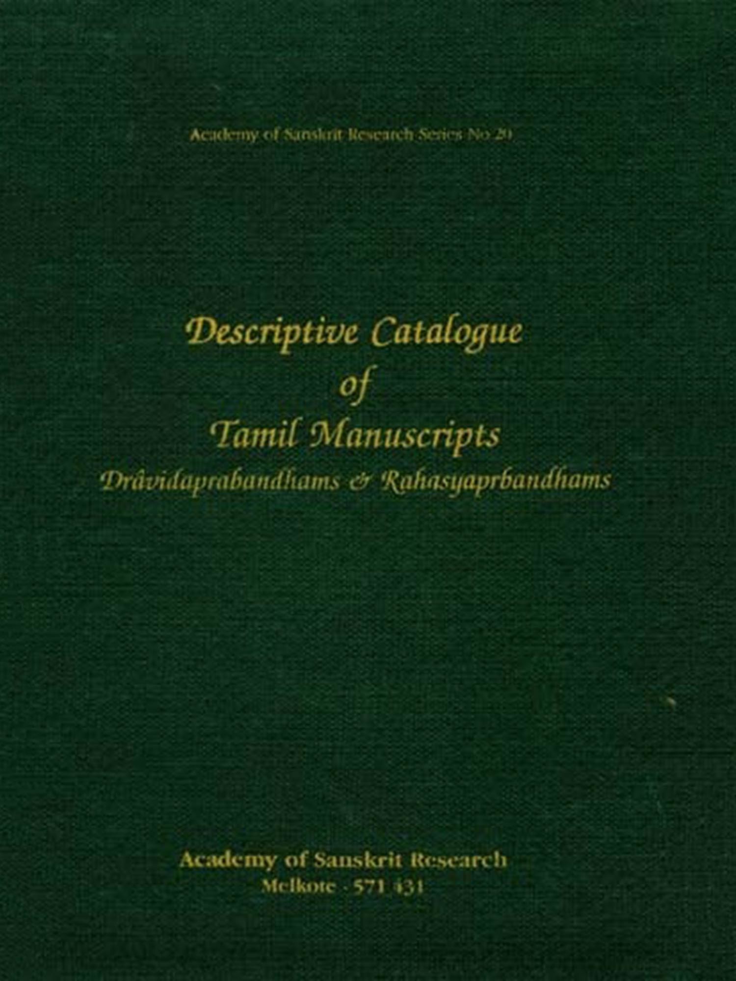 This volume of the Descriptive Catalogue gives a detailed description of the Dravidaprabandhams and the Rahasyaprabandhams available in the Manuscript Library of the Academy.