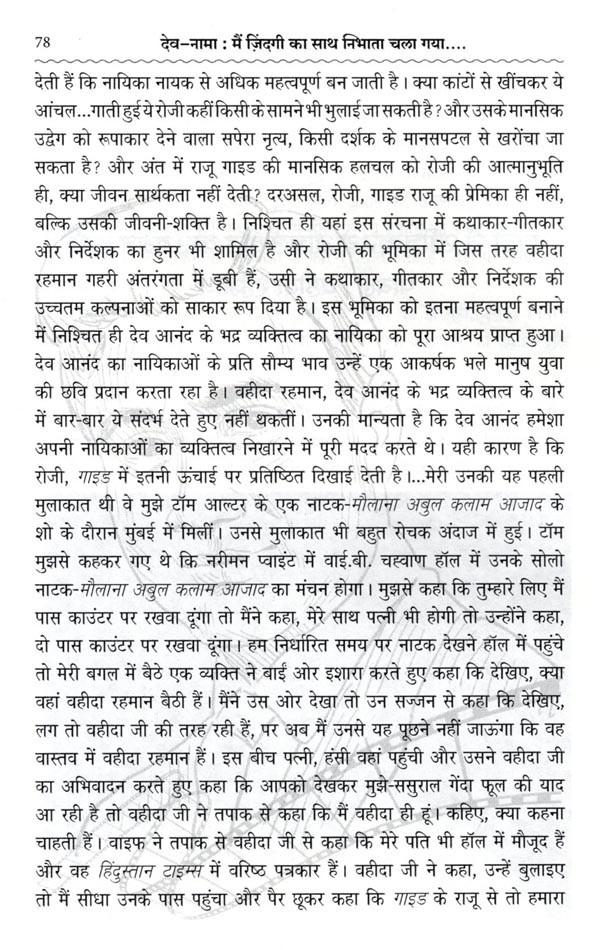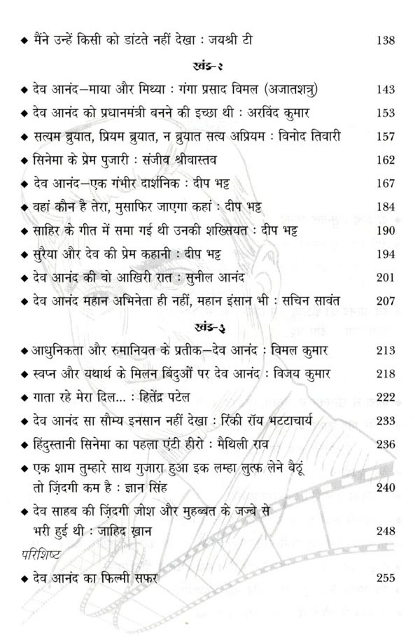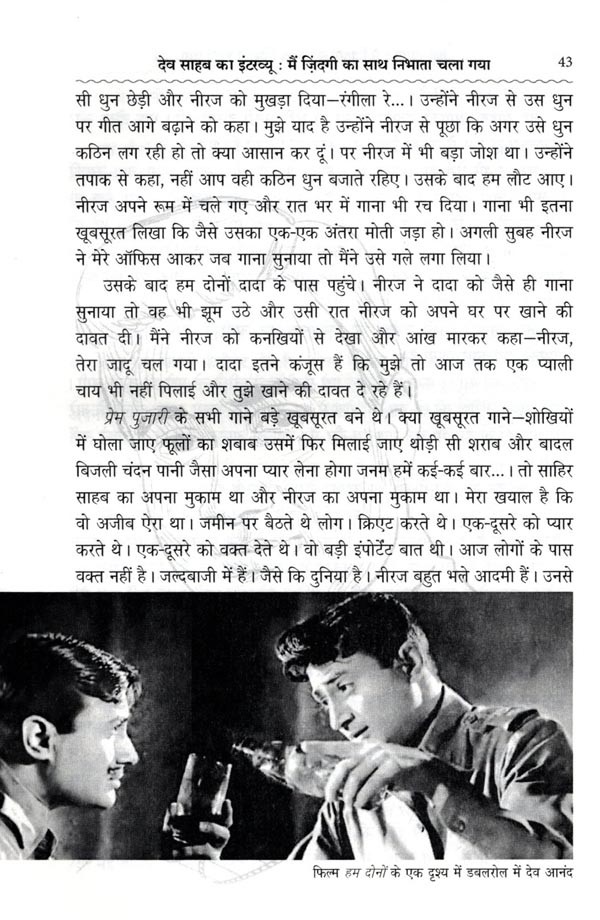 विश्व सदी के महान फिल्म अभिनेताओं में से एक देव आनंद के जन्मशती वर्ष में वरिष्ठ फिल्म पत्रकार दीप भट्ट की इस पुस्तक का प्रकाशन निश्चय ही एक उल्लेखनीय घटना है। पहली बार हिंदी में देव आनंद पर एक ऐसी पुस्तक प्रकाशित हुई है जिसमें उन्हें विभिन्न कोणों से समझने का प्रयास किया गया है और उनके जीवन तथा फिल्मों के बारे में एक सम्यक मूल्यांकन करने का प्रयास किया गया है। दीप भट्ट ने बड़ी मेहनत और लगन से इस किताब को तैयार किया है जिसमें देव साहब को लेकर उनका जुनून देखा जा सकता है। उन्होंने इस पुस्तक में देव साहब, उनकी पत्नी कल्पना कार्तिक तथा को-स्टार वहीदा रहमान के इंटरव्यू भी शामिल किये है। साथ ही मनोज कुमार, जीनत अमान, सुभाष घई, मुजफ्फर अली और माधुरी के दिवंगत संपादक अरविंद कुमार, प्रख्यात लेखक गंगा प्रसाद विमल, प्रसिद्ध आलोचक एवं कवि विजय कुमार हितेंद्र पटेल जैसे लेखकों के लेख भी शामिल हैं। इस पुस्तक की भूमिका हिंदी के वरिष्ठ कवि आशुतोष दुबे ने लिखी है। दो शब्द देव साहब के बेटे सुनील आनंद ने लिखे हैं। इस तरह देव साहब की पूरी फिल्मी जीवन यात्रा इस पुस्तक में समाई है। उम्मीद है देव साहब के लाखों प्रशंसक और चहेते इस किताब के जरिये अपने प्रिय अभिनेता के बारे में बहुत कुछ जानेंगे।
