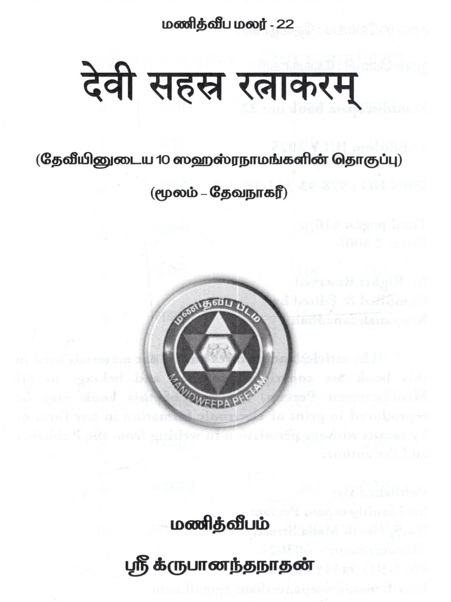 Publisher: Sri Manidweepam Peetam, Thiruninravur