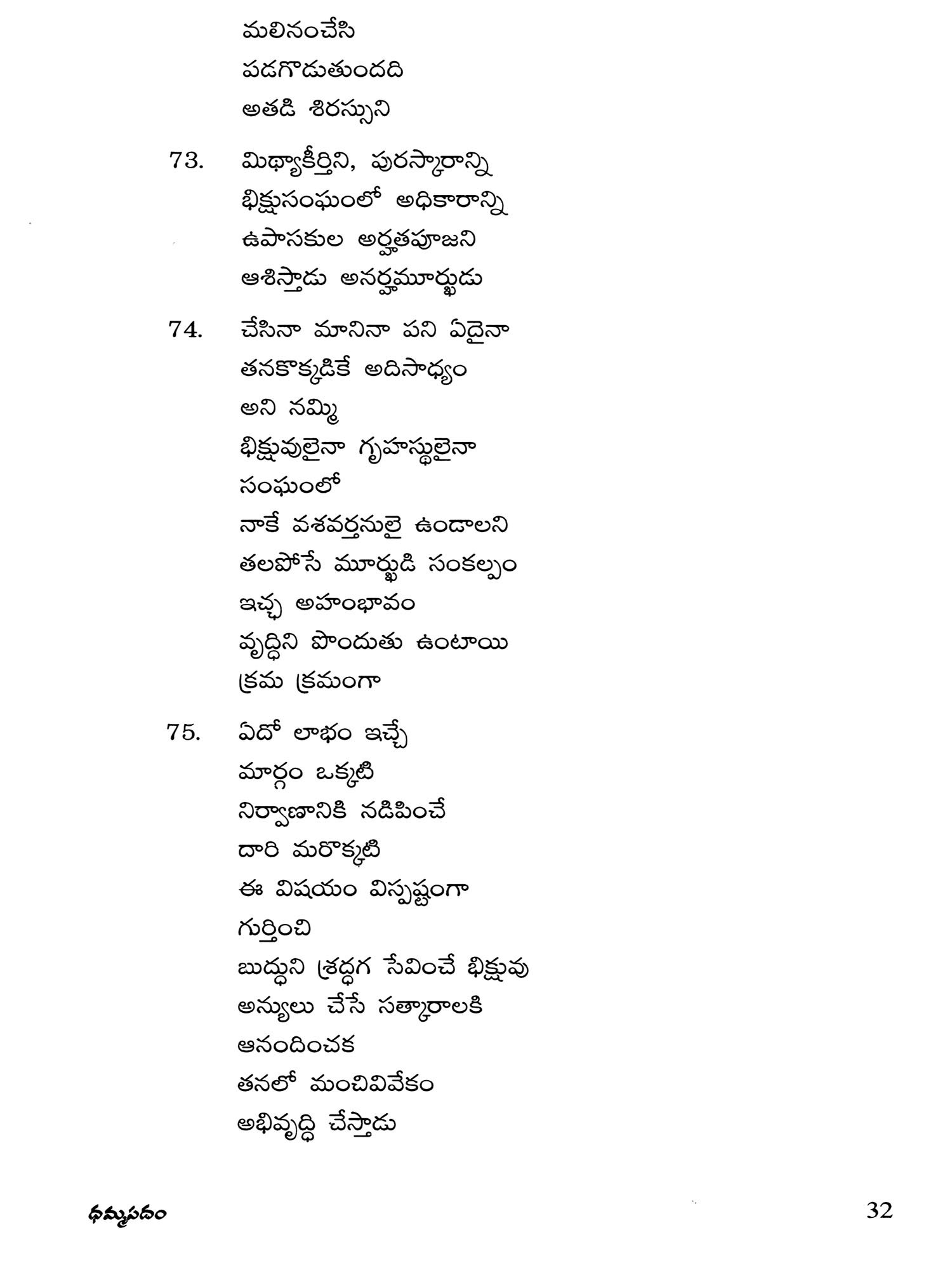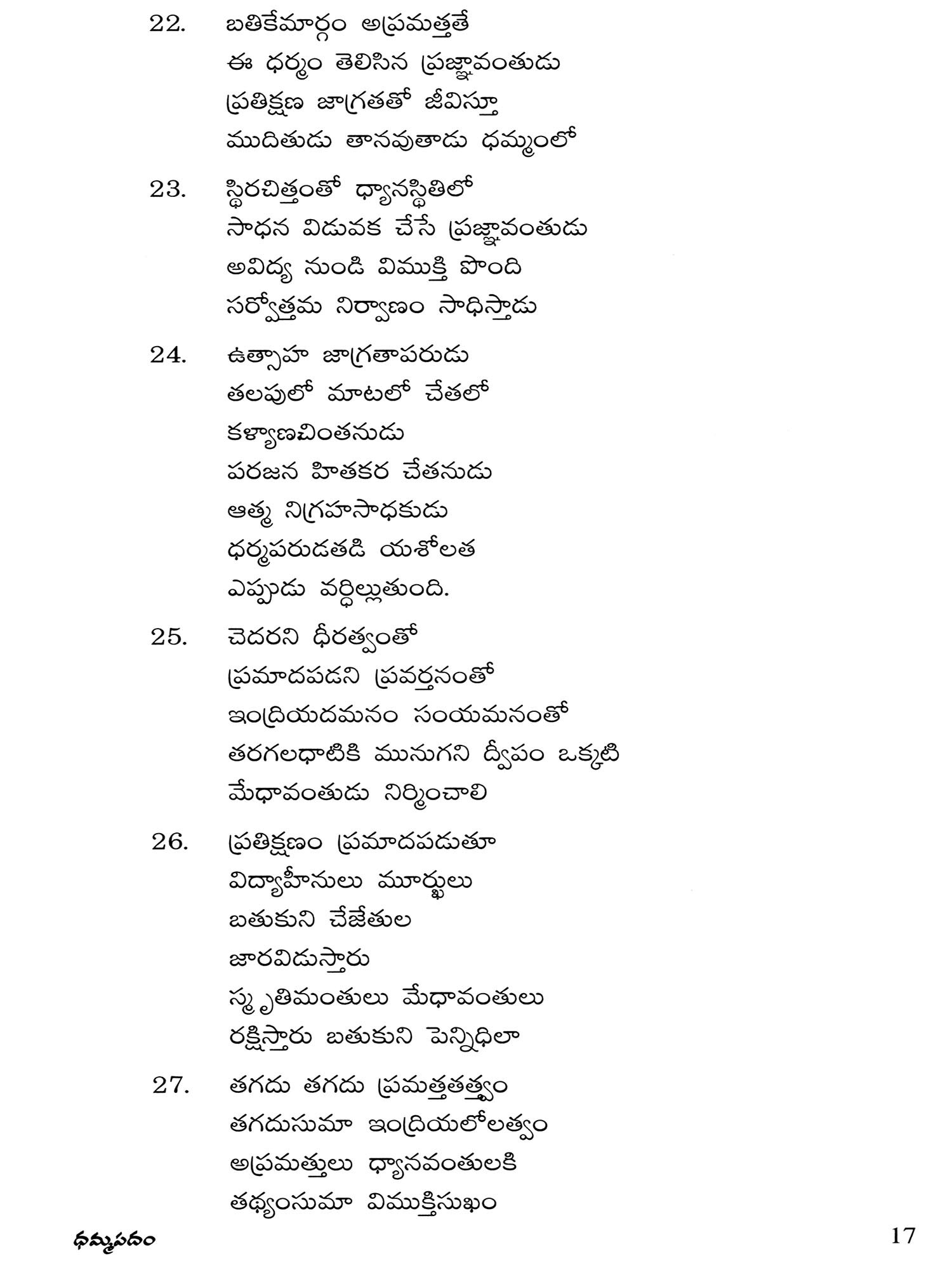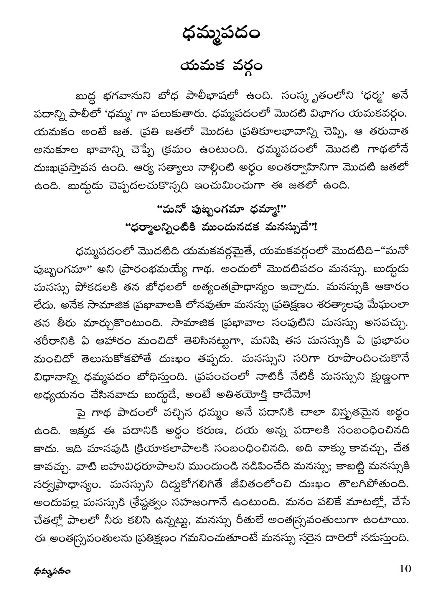 ధర్మపదము (బుద్ధ భగవానుని ఉపదేశ సారము: Dharmapadam (The Essence of the Teachings of Lord Buddha) Telugu