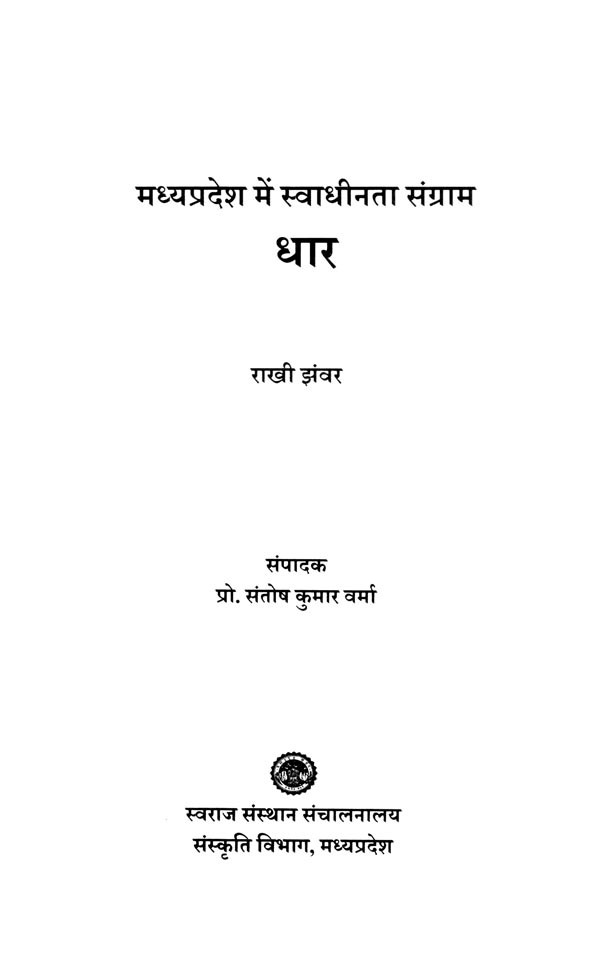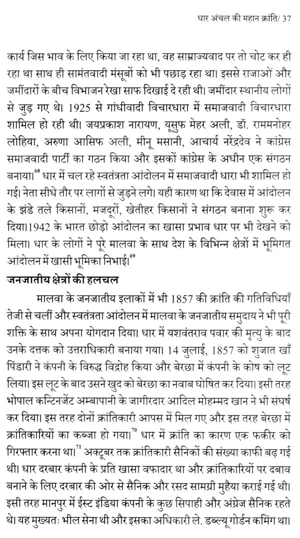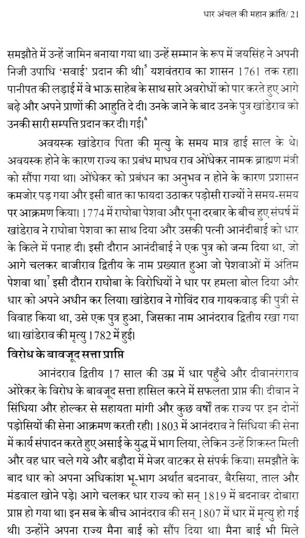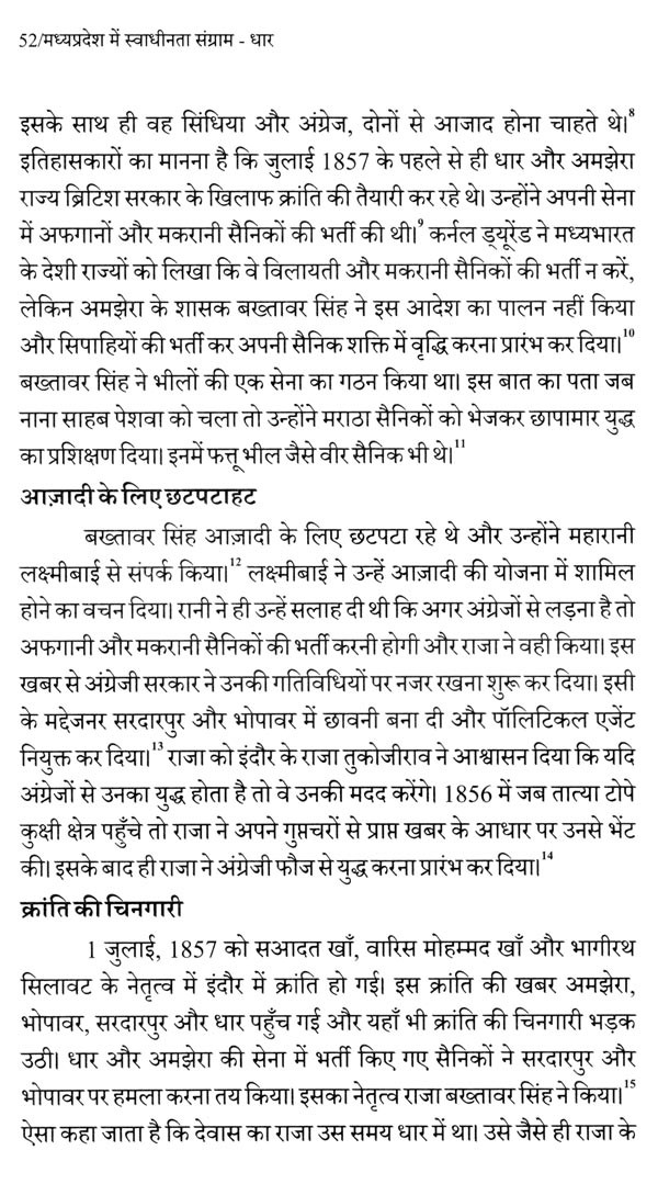 धार अंचल के स्वतंत्रता आंदोलन के इतिहास पर शोध कार्य एक महत्वपूर्ण चुनौती थी और स्वाभाविकतः किसी भी क्षेत्र के इतिहास के समान धार के इतिहास को किसी एक पुस्तक में समेटना अत्यंत दुष्कर कार्य था, फिर भी इस शोध कार्य के दौरान जो तथ्य मुझे प्राप्त हुए उनका मैंने गहराईपूर्वक अध्ययन किया।