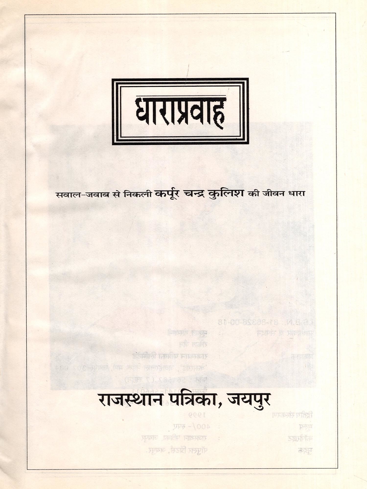 धाराप्रवाह- Dharapravah: Sawal Jawab Se Nikali Karpur Chandra Kulish Ki Jeevan Dhara (An Old and Rare Book)
