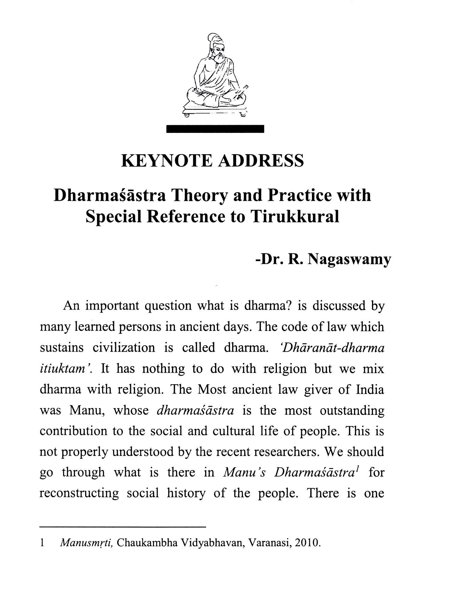 Dharmasastra: Theory and Practice (A Comparative Study with Tirukkural)