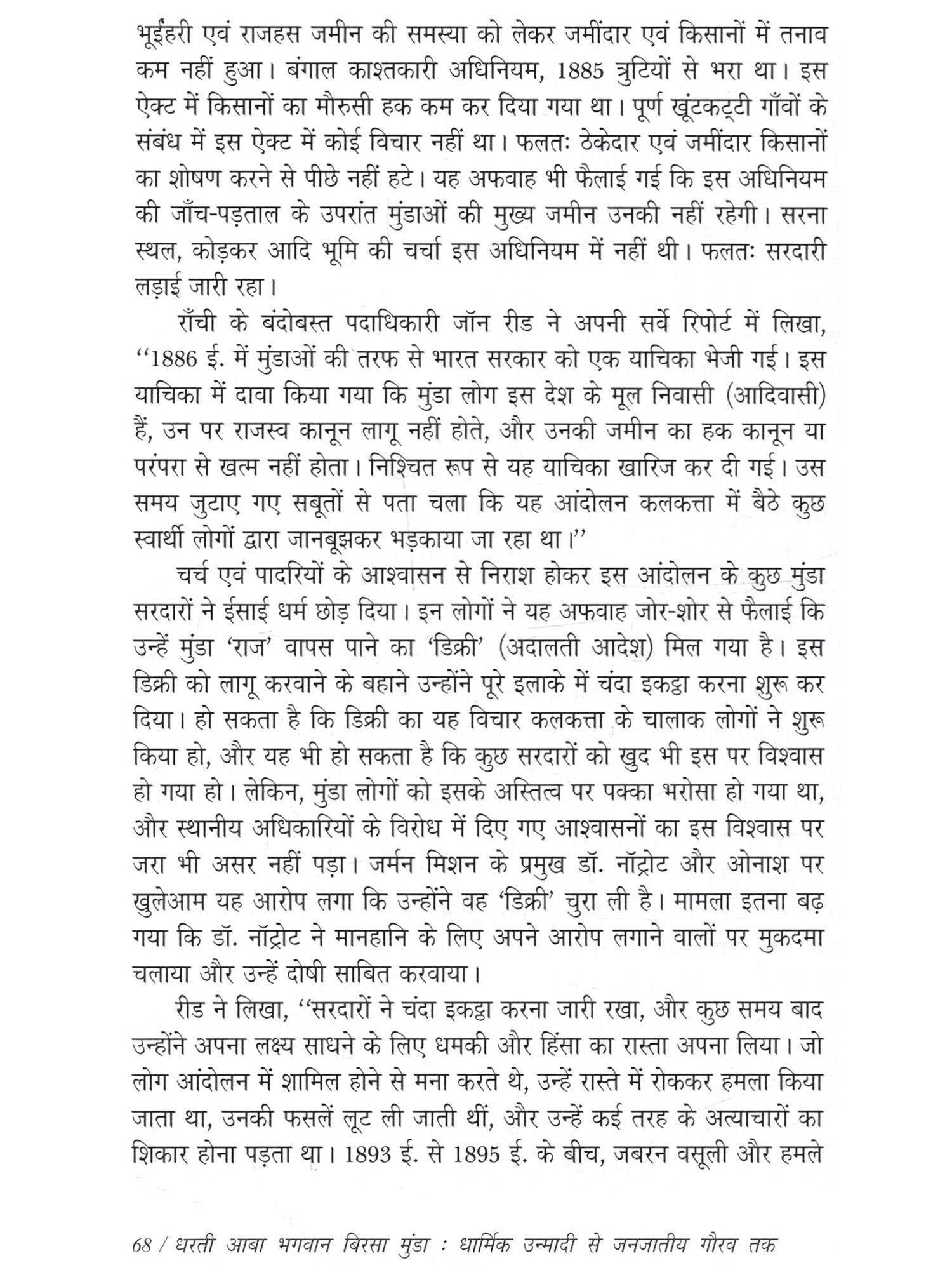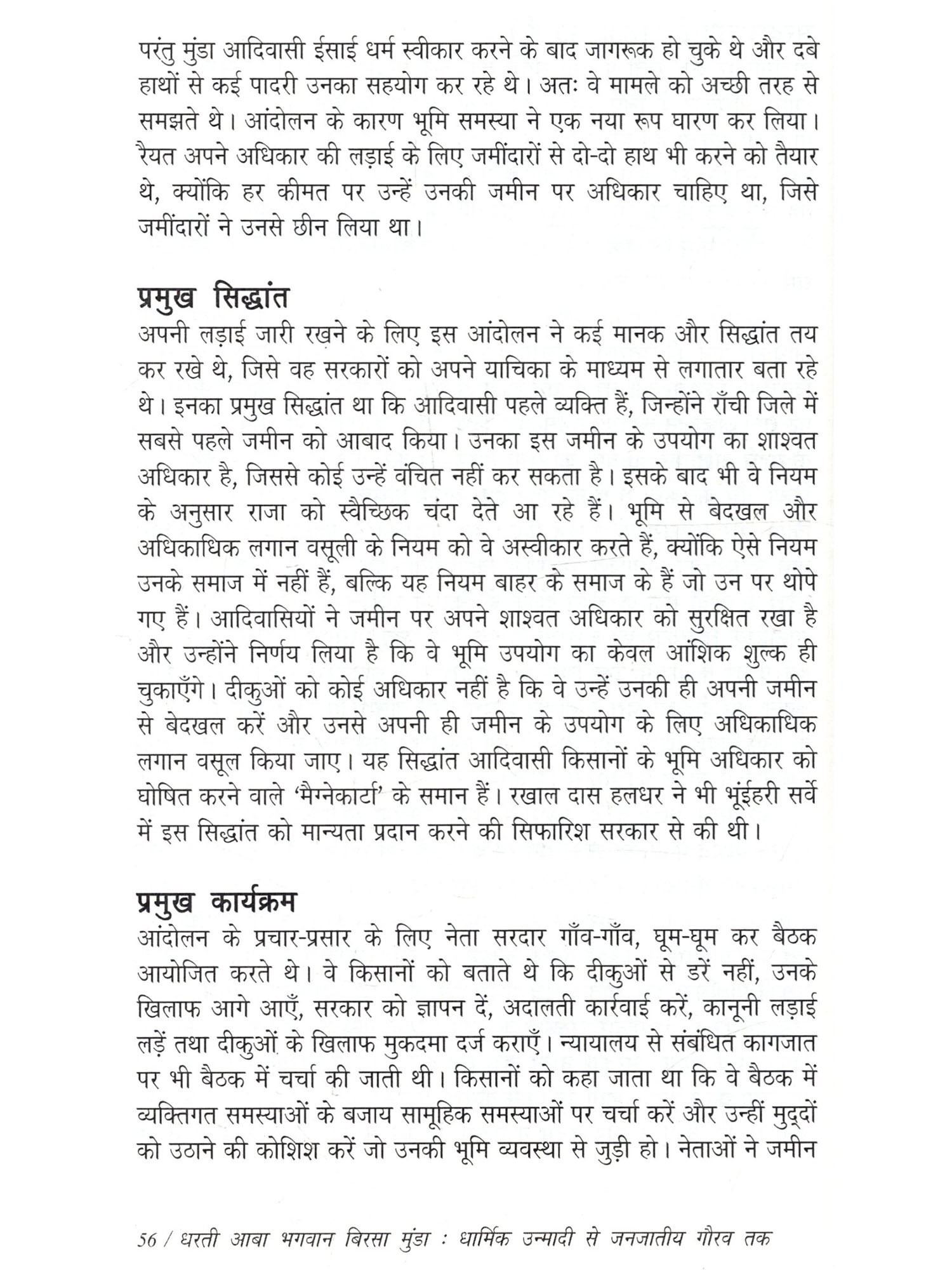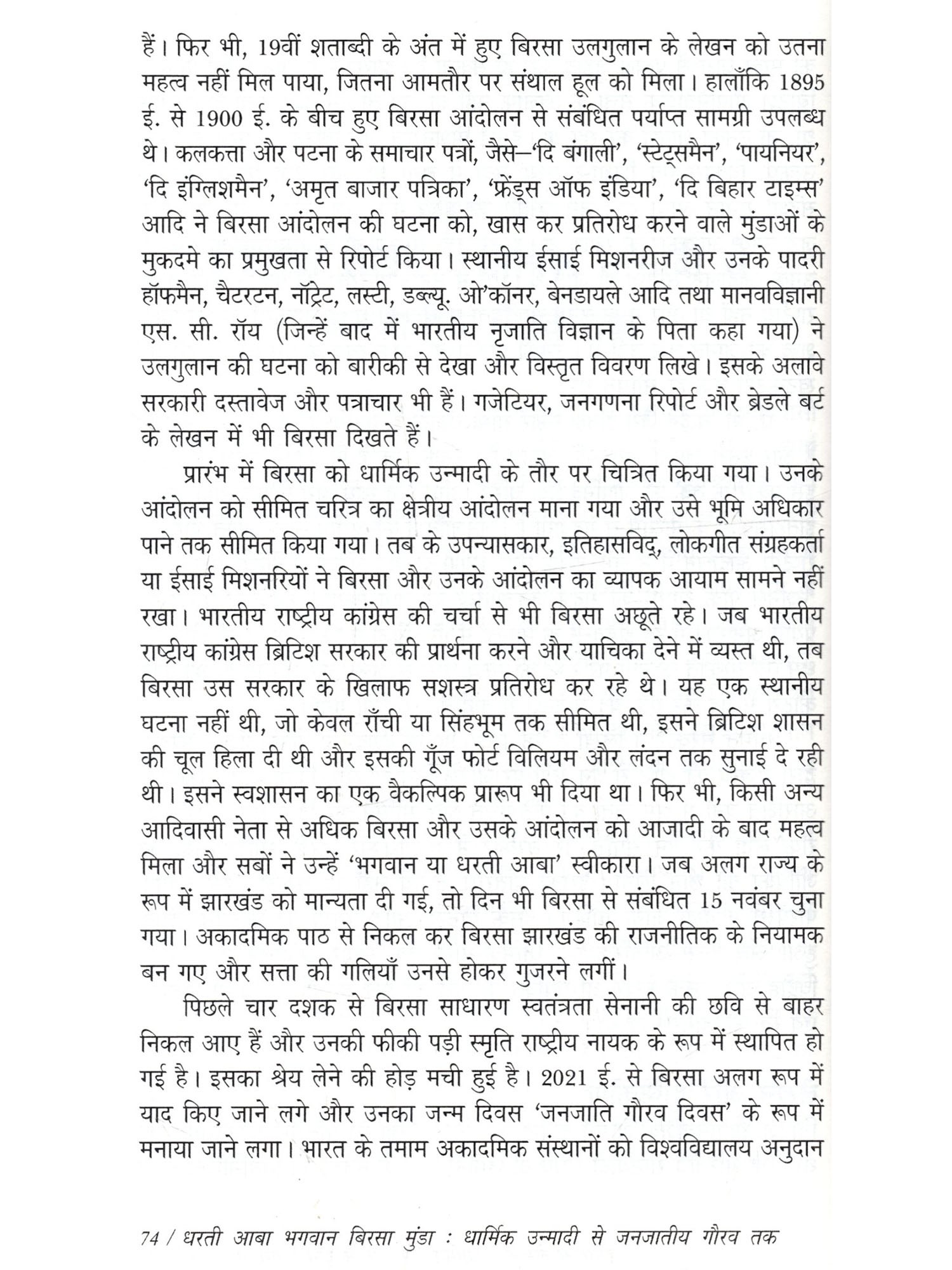 भारत के स्वतंत्रता संग्राम में प्रतिरोध और सांस्कृतिक पुनर्जागरण का इतिहास भगवान बिरसा मुंडा (1875-1900 ई.) के उल्लेख के बिना अधूरा है। वर्तमान खूंटी जिले (तब के लोहरदगा) के उलिहातु में जन्मे बिरसा मुंडा आदिवासी समुदाय की एकीकृत शक्ति के प्रतीक थे। उनका 'घरती आबा' रूप लोगों का उनके प्रति सम्मान और भावनात्मक बंधन दोनों को समाहित करता है। धार्मिक उन्मादी से उद्धारकर्ता भगवान के रूप में पूजा जाना और उसके बाद जनजातीय गौरव के प्रतीक के रूप में स्वीकृत बिरसा मुंडा की यात्रा एक गहन परिवर्तन का उद्घोष है। और यह न केवल एक व्यक्ति की विरासत का बल्कि एक पूरे समुदाय की आत्म-चेतना का परिवर्तन है। उनका 25 वर्षीय जीवनकाल उस अकल्पनीय यात्रा का समावेश है, जिसमें एक हाशिए का मुंडा युवक मिशनरी प्रभाव से अलग वैष्णव मान्यता के बीच से रास्ता तय करता हुआ तीव्र आध्यात्मिक जागरण और भविष्यवक्ता का प्रतीक वन लोगों को संगठित करता है और छोटानागपुर पठार में ब्रिटिश साम्राज्यवाद, ईसाई हस्तक्षेप और शोषक तत्वों के विरुद्ध क्रांतिकारी कमांडर बन कर उलगुलान का नेतृत्व करता है। बिरसा मुंडा का यह रूप सदैव गहन अकादमिक पुनर्परीक्षण की माँग करता रहेगा। ऐसे हुतात्मा पर लेखनी चलाना स्वयं को धन्य करने जैसा तो है ही, इसका महत्व तब और भी बढ़ जाता है, जब समय उनकी जन्म जयंती के 150वें वर्ष का हो और उनके सम्मान में इसे 'जनजातीय गौरव वर्ष' के रूप में देश मना रहा हो। व्यापक ऐतिहासिक परिप्रेक्ष्य में विरसा मुंडा को समझना हमेशा से चुनौती भरा रहा है, क्योंकि उनके व्यक्तित्व के कई रूप हैं और वे समय के साथ नई मान्यताओं को ग्रहण करते रहे हैं। धार्मिक उन्मादी, प्रस्तुत शोध-उन्मुख ग्रंथ 'धरती आवा भगवान बिरसा मुंडा धार्मिक उन्मादी से जनजातीय गौरव तक' बिरसा और उलगुलान आंदोलन की स्थापित जीवनी लेखन और विशद्ध रूप से राजनीतिक व्याख्याओं से आगे बढ़ने का एक प्रयास है। पुस्तक की केंद्रीय परिकल्पना बिरसा की चेतना और सक्रियता के विकास और उसे लेकर मिशनरी एवं औपनिवेशिक सोच के साथ-साथ आज के भारत में उन्हें लेकर उत्पन्न परिदृश्य को संबोधित करती है। विरसा पर शुरुआती चरण का लेखन पारंपरिक कथा, भविष्यवाणी, विरसाइत पंथ की स्थापना और नैतिक सुधार के उत्साही आह्वान के रूप में चिहिनत है. जिसमें उनका स्वरूप एक 'धार्मिक उन्मादी' के रूप में चित्रित है. जिसे मिशनरी और औपनिवेशिक आख्यान ने गढ़ा है। हालांकि यह एक युवा की तीव्र और परमानंदमय धार्मिक जोश की अवधि थी, और यह कोई भटकाव नहीं था, जैसा कि मिशनरी लेखन और औपनिवेशिक सोच से परिलक्षित होता है। यह तो वह आवश्यक कसौटी थी जिसमें उपनिवेश और ईसाई मिशनरी विरोधी राजनीतिक विचारधारा का जन्म हुआ था। इस पुस्तक में अंतर्