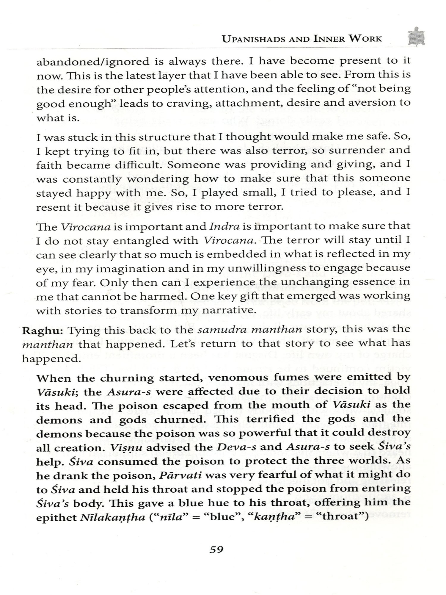 The book invites you to expand beyond westernized knowledge and practices typically used for self-development and teaching. From this perspective, both knowing about and knowing that are required for the critical spiral movement between churning and calm. Both types of knowing combine to inch us towards liberation. "Only by transcending the word does insight arise and one starts living by the insight" this book tells us. Overall, in the book's revival of the Upanishadic storytelling paradigm you will learn about and experience transcending time and place, religion and culture, and you will be invited into the coherence and flow of transformation.