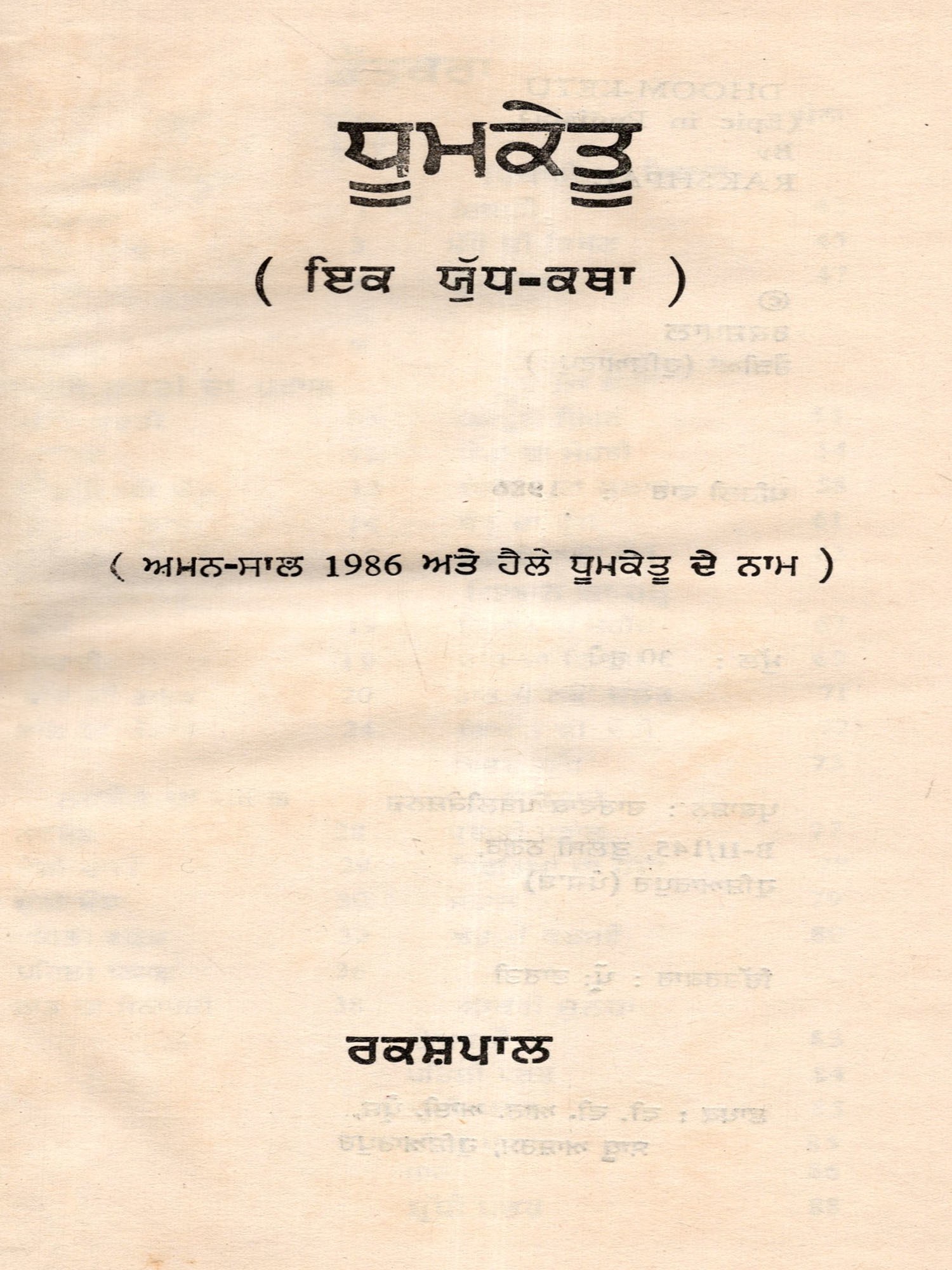 ਧੂਮਕੇਤੂ: Dhoom Ketu (A War Story- Named after the Peace Year 1986 and Halley's Comet) An Old and Rare Book in Punjabi (An Old and Rare Book)