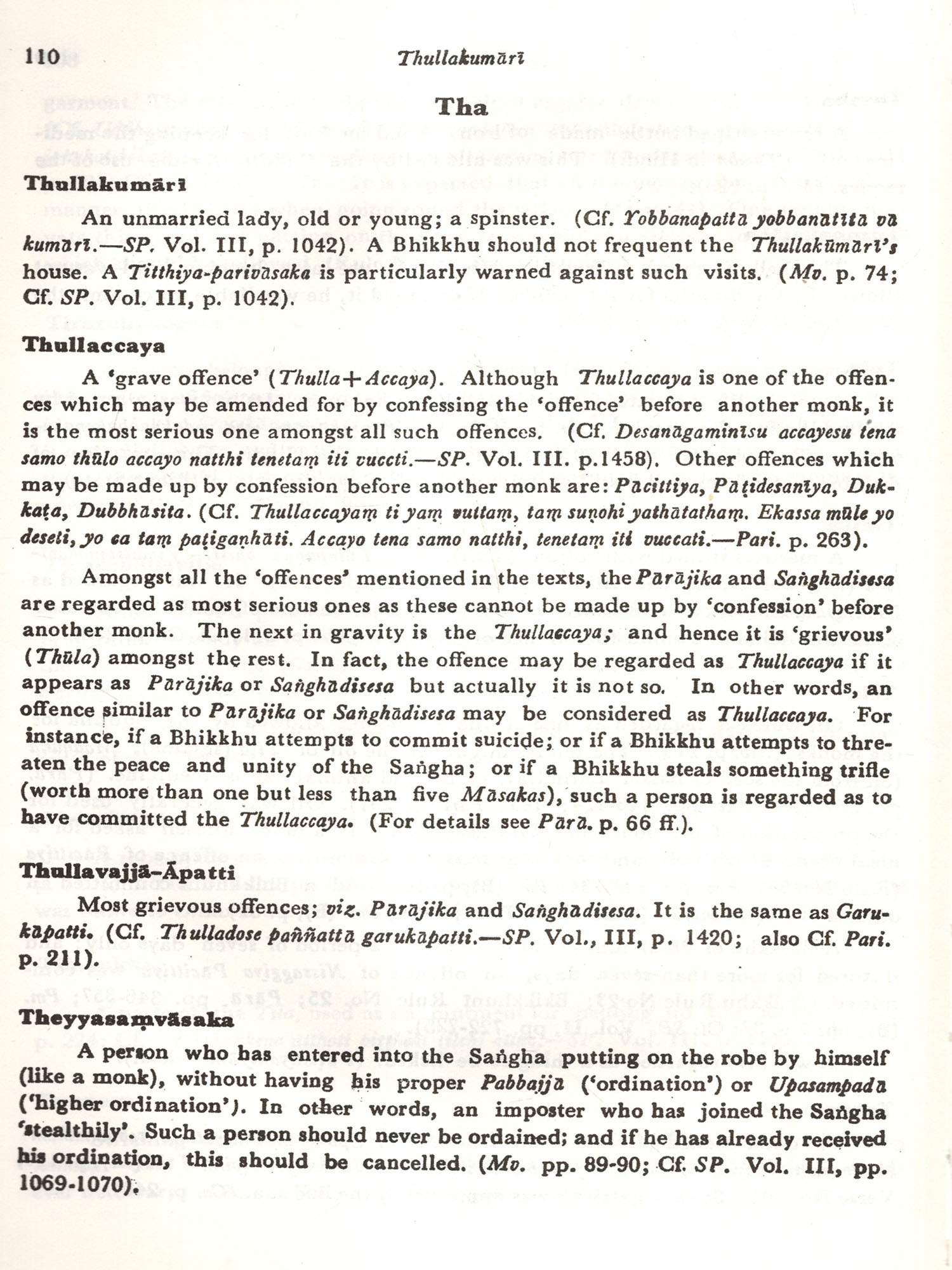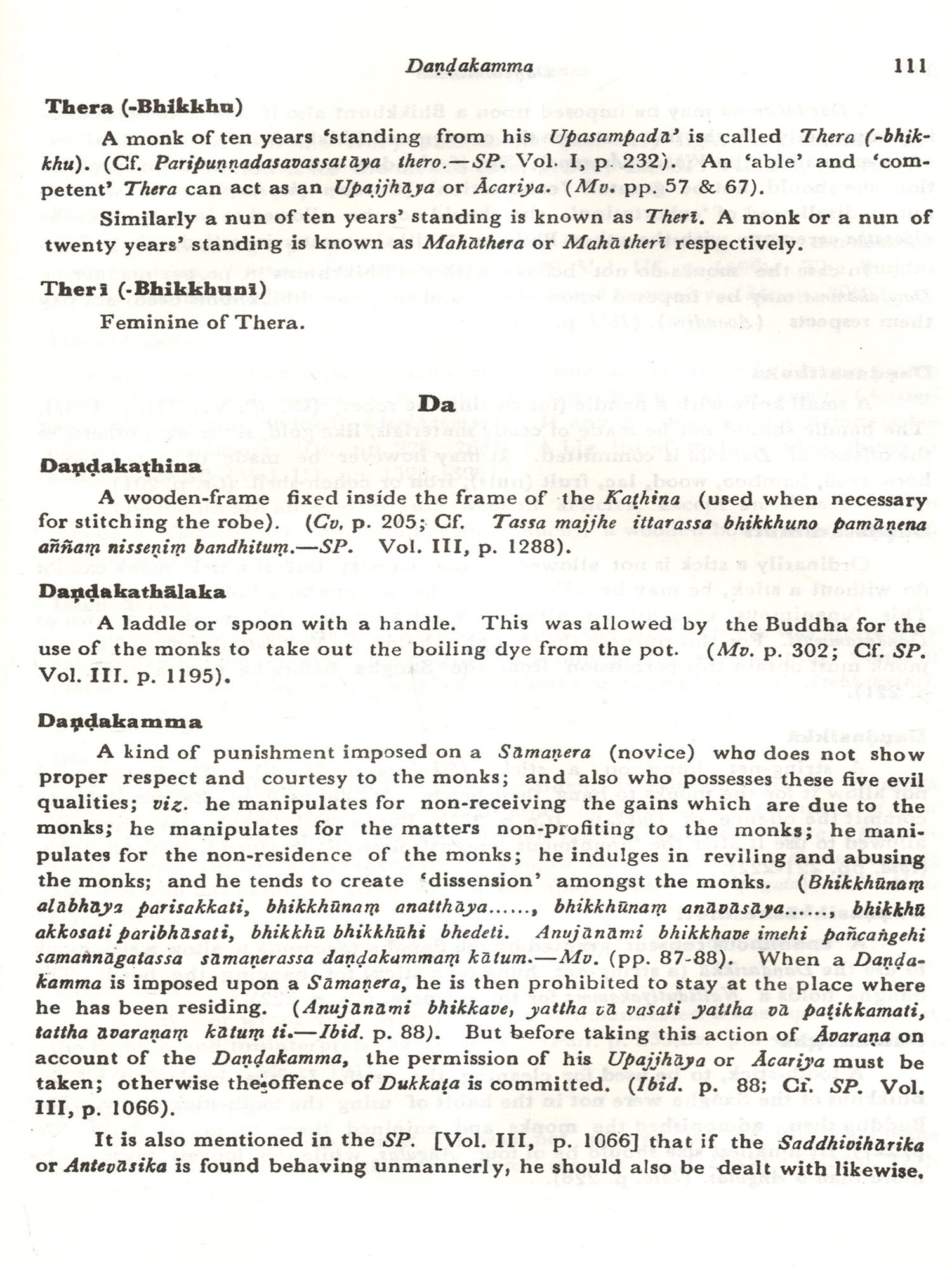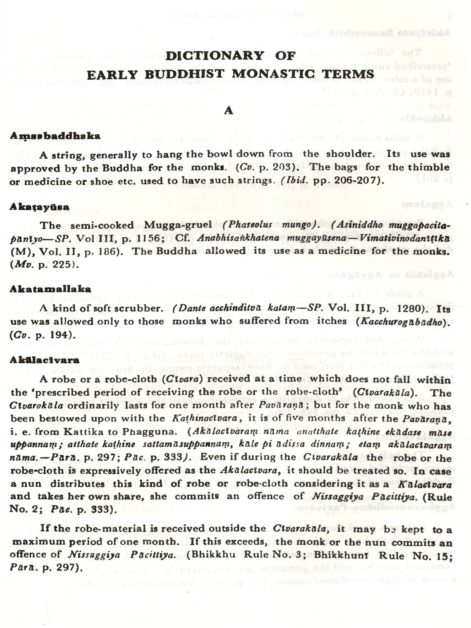 While teaching the Vinaya Pitaka in the Post-graduate classes at Nava Nalanda Mahavihara I was confronted with a number of problems connected with the monastic rules and ecclesiastical terms. The former were difficult to understand as we were cut off from the main stream of Buddhist monastic tradition, and the problems presented by the latter were mostly semantic. I had to grapple with these problems and the present Dictionary is the outcome of my sustained effort to explain them.