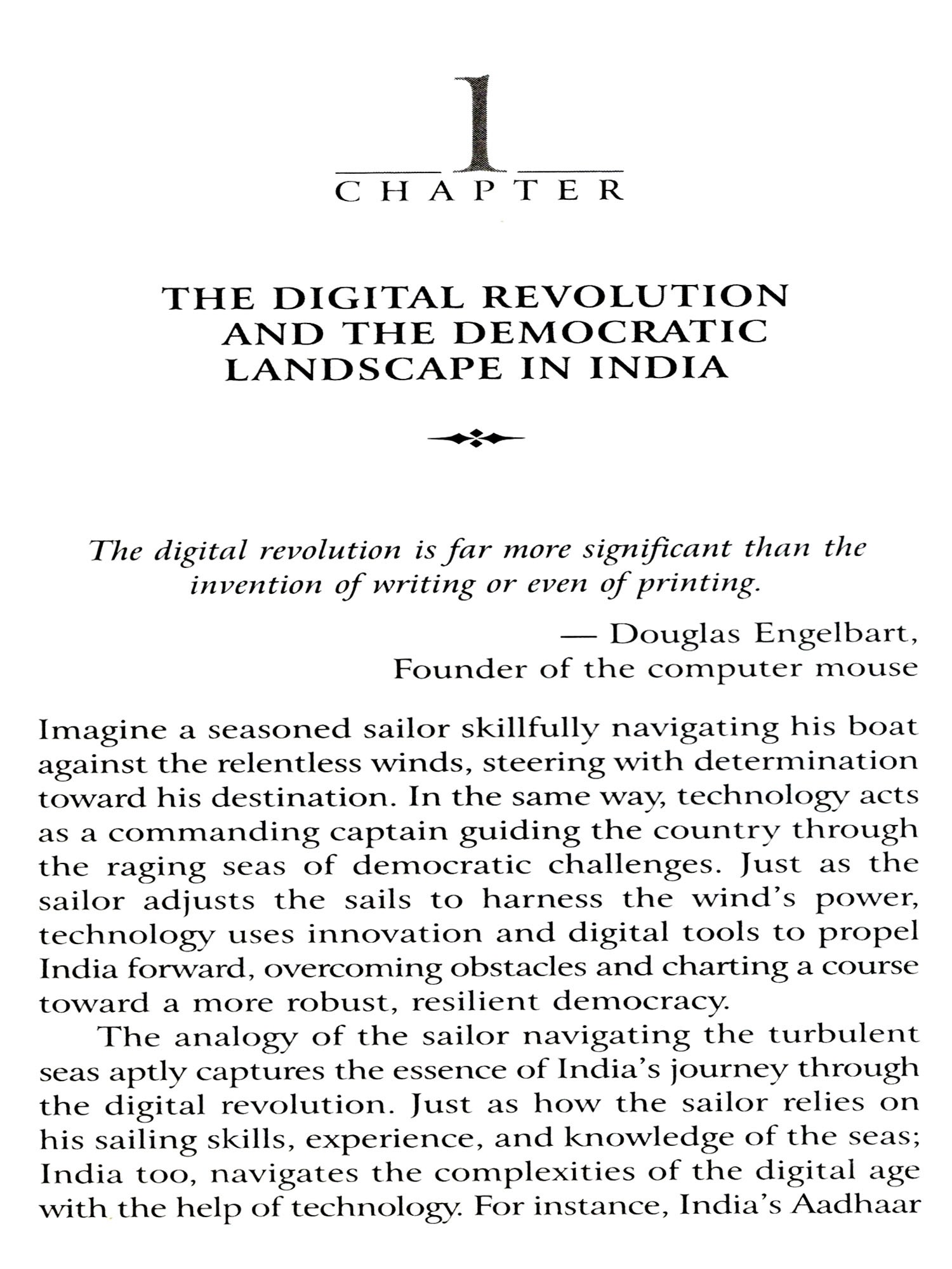 This book examines these topics across chapters, delving into areas like e-governance, digital rights, social media's influence on public opinion, and the potential roles of blockchain and artificial intelligence in governance. By drawing from real-world examples, case studies, and the contributions of various thought leaders, I aim to provide a nuanced perspective on how India can harness technology to strengthen its democratic fabric.