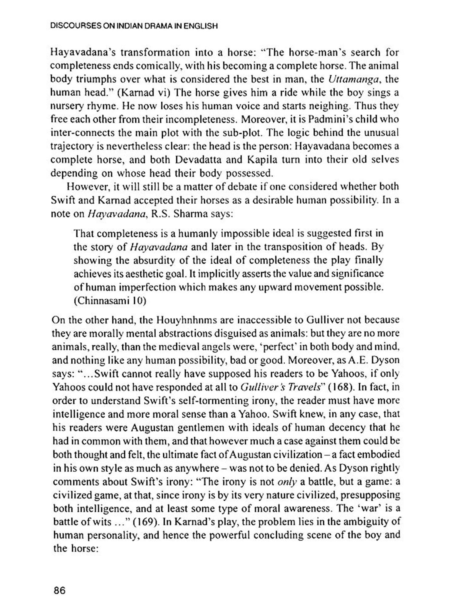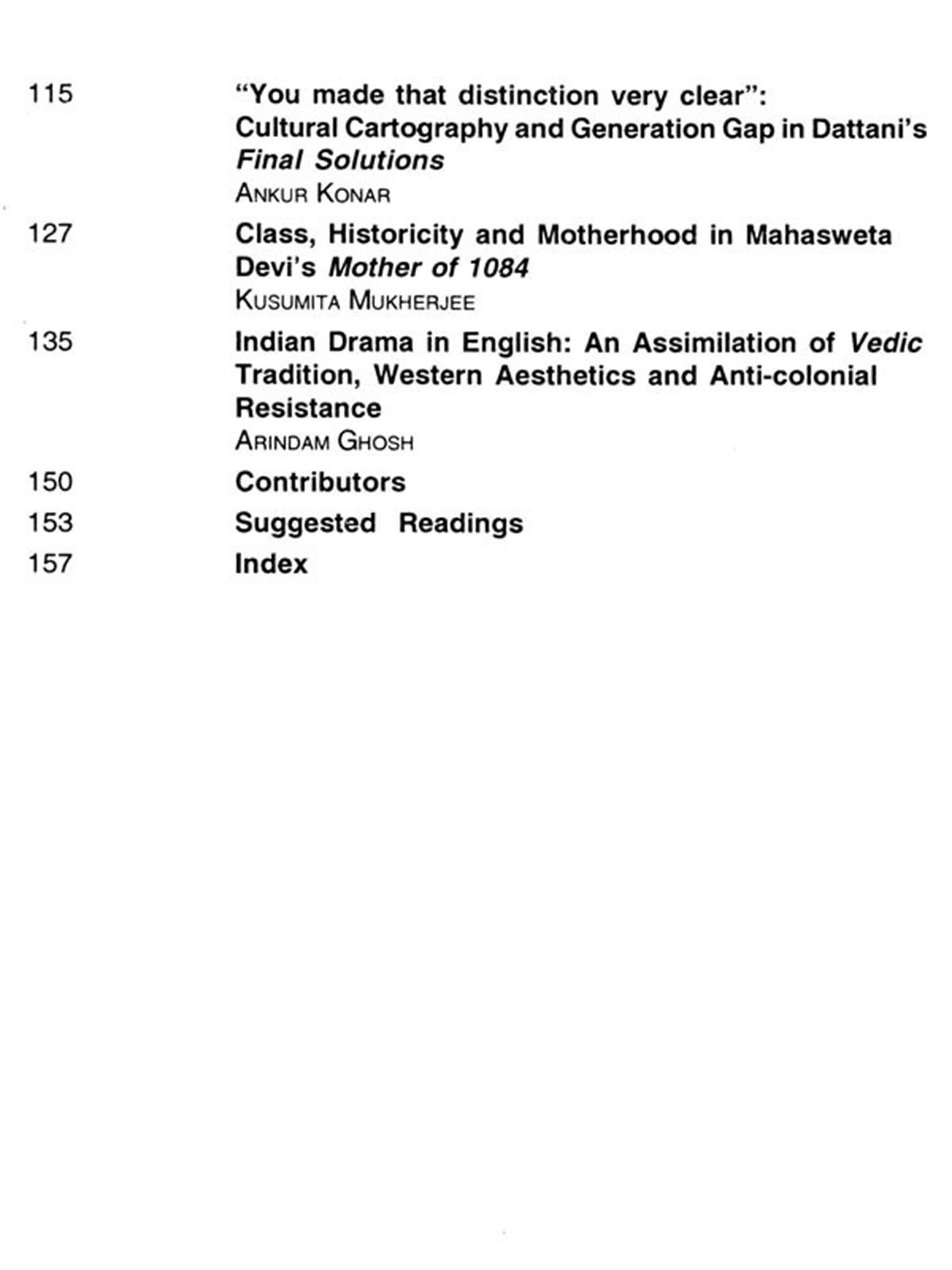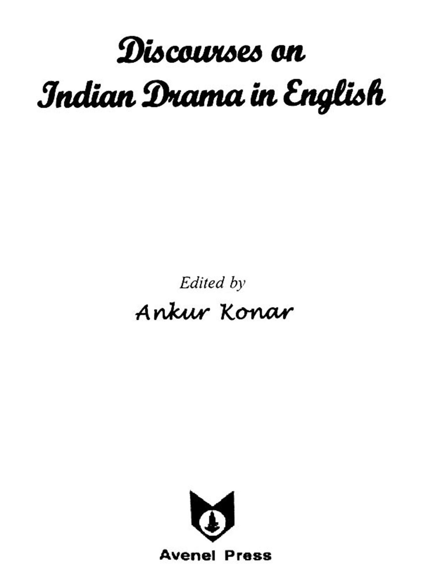 In spite of the granted fact that the corpus of Indian English drama is confined to certain boundaries and does represent only limited aspects and prospects, this anthology, with a very positive effort, desperately tries to promote all the possible and probable hidden discourses lying beneath the popular texts of Indian drama in English. Discourses on Indian Drama in English is written basically through textual analysis, not through the angels of performance studies. Discourses on Indian drama in English have been developed through issue-based theoretical discussion. With special references to Aurobindo, Tagore, Sircar, Tendulkar, Karnad, Hasmi, Dattani and Mahasweta Devi, the readings and re-readings of some popular texts nurture some obvious academic values.