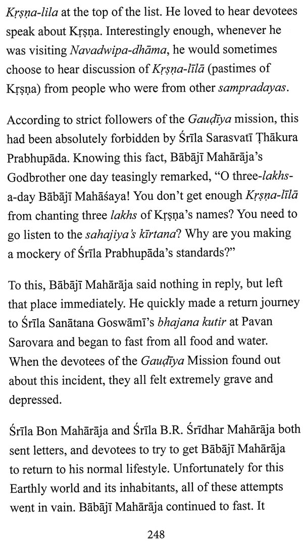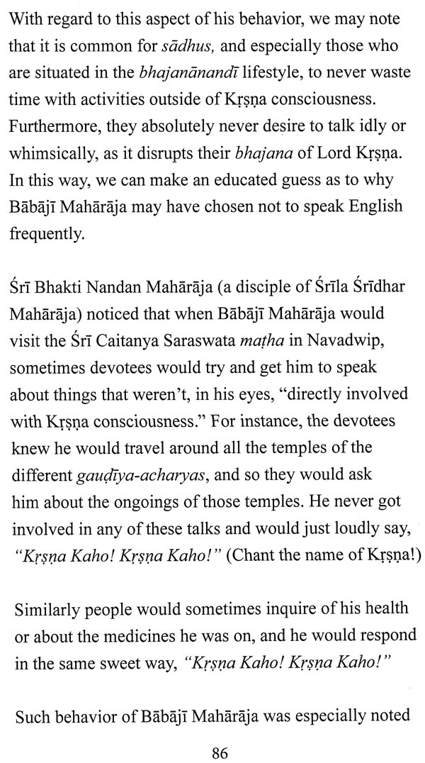I was happy to hear from Babhru Dasa that he had undertaken the task of compiling and curating as comprehensive an account of Babaj1 Maharaja’s life and character as possible. I am grateful for the trouble he has taken to produce this volume, and I have found it a pleasure to offer some assistance in his effort. I hope that many vaisnavas will find inspiration in reading about Krsna Dasa Babaji Maharaja as a result of this work. I hope further that others who had the good fortune of his company may feel inspired to come forward and share their experiences for future editions.