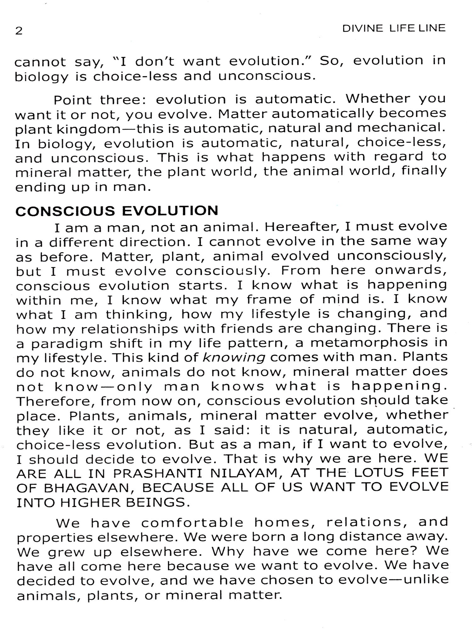 I express my profound thanks and gratitude to Prof. P.V. Vaidyanathan, Trivandrum, Kerala for editing and shaping all our Sunday talks into a series of useful books for the benefit of devotees. The index and analytical summary of Sunday talks given here were prepared by Prof. Vaidyanathan. My thanks are also due to Prof. Mukundan, State President, Kerala, Sri Sathya Sai Organisations and Sri V.Bhadran, District President, Sri Sathya Sai Organisation, Thiruvanathapuram, Kerala for their assistance in preparing the type scripts of these lectures and technical support. I earnestly hope that this volume DIVINE LIFE LINE may well go forth and deliver its message. This book embodies pious teachings and messages of Bhagawan. We welcome educative and useful discussions on these topics mentioned in this book. SAIRAM.