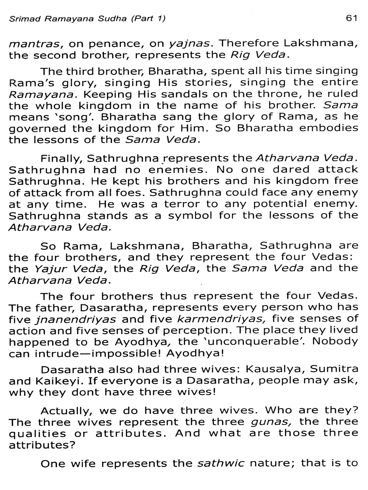 With our feet firmly on the ground, and the hands that can touch the stars, BABA aims at creating the conditions for the birth of a new kind of human being, characterised as "GOLDEN AGE". The message of Bhagavan Sri Sathya Sai Baba encompasses both the timeless wisdom of the East and the highest potential of Western Science and technology. They accelerate the pace of contemporary life contributing to the science of inner transformation and an approach to meditation. The discourses of Swamy support moving toward a more joyous and less stressful life. Each speech is a combination of methods of Self understanding with awareness techniques. All seekers will find encouragement and inspiration in His divine discourses. Knowing His message is power and a victory march. Understanding His message is liberation. So no surprise if one always yearns to know more. The interest grows more and more. Bhagawan Baba offers us a new perspective, a new way of looking at life and a new way of living. In the interviews Baba responds very personally to each individual with unique insight and support. We beyond doubt enjoy peace in His benign presence. Baba gives us the gift of inner purity with which we can overcome the perversities of the mind. We attain the divine experience of eternal duty, fulfilling our lives. Baba's teachings emphasise the expansiveness of heart to embrace everything. Baba in His divine discourses transmits to devotees secrets that no philosophy can explicate. A constant reminder that "I am a Man and not an animal" will keep us above animality. The language of the mind differs based on the temperament/Samskaraas of the individual. But the language of the heart is one, value based. The reality is beyond or transcendental. This is very much conveyed in our Upanishads. A humble attempt is made to understand these aspects in our Sunday Sathsangs. A ritual is spiritual when it is performed in full awareness of the significance and applied to our lives. It is in this direction a study of Sai Literature is made with reference to festivals like Onam and Navarathri. Srimad Ramayana is an epic of immense value and relevance today. Baba explains Ramayana as the unfolding of the drama of the highest human life. The role of Rama was that of a human being desirous of acting comfortably to the highest ideals of Dharma, the best traditions of his time. We gain by studying the epic as a human document rather than as a religious book. Bhagawan eloquently elucidates various dimensions on this great epic Ramayana. This subject is also discussed in our Sunday Satsangs.