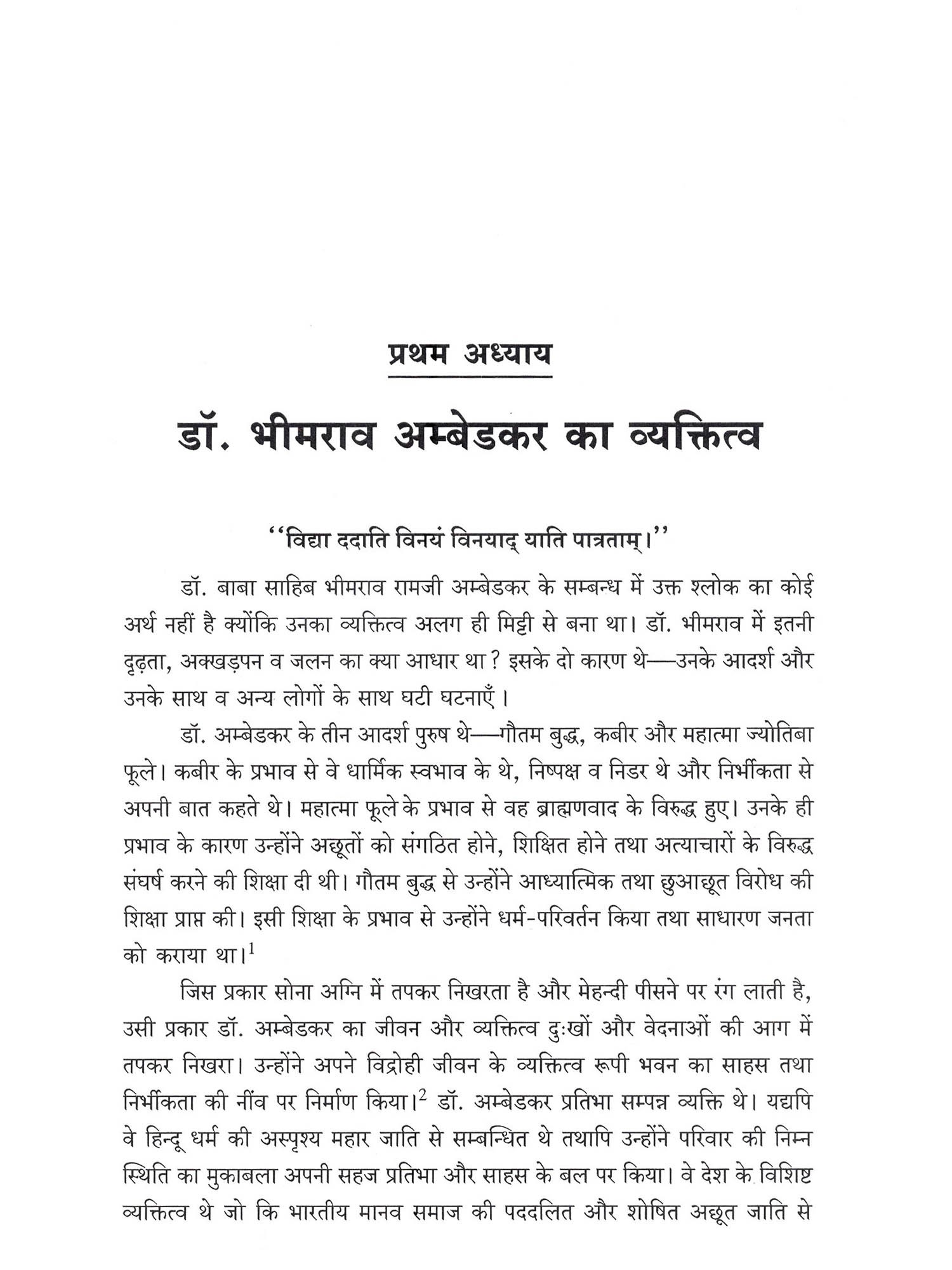 प्राचीन युगीन भारत आर्थिक दृष्टिकोण से 'सोने की चिड़िया' और आध्यात्मिक दृष्टिकोण से 'जगद्गुरु' कहलाता था। नालन्दा, तक्षशिला और विक्रमशिला ज्ञान और शिक्षा के पावन केन्द्र थे। भारत की रत्नगर्भा वीरप्रसूता धरती ने अनेक वीर और साहसी रणबांकुरे, समाज-सुधारक तथा धर्म-प्रवर्तक जाज्वल्यमान रत्न उत्पन्न किए, उनमें से एक डॉ. भीमराव अम्बेडकर प्रमुख समाज और धर्म-सुधारक थे। वे अद्भुत प्रतिभावान्, निष्ठावान्, अगाध ज्ञान के आगार, अध्यवसायी, प्रकाण्ड पण्डित, निर्मल स्वभाव, विवेकवान, देशप्रेमी, राष्ट्र-वादी, न्यायशील, धैर्यवान, धार्मिक स्वभावी, सज्जनता की प्रतिमूर्ति, दीन-हीन के प्रति प्रेम करने वाले, युग-प्रवर्तक महामानव थे। वे दलितों के मसीहा और अछूतों के उद्धारक थे। भारतीय समाज व्यवस्था में विद्यमान ब्राह्मणवाद, वर्णवाद और छुआछूत की व्यवस्था के विरुद्ध प्राचीनकाल में महावीर स्वामी और भगवान बुद्ध ने आवाज बुलन्द की। मध्यकाल में रामानन्द, रामानुज, कबीर, चैतन्य महाप्रभु, रविदास आदि ने और आधुनिक युग में ज्योतिबा फूले, राजाराम मोहनराय, स्वामी दयानन्द सरस्वती, स्वामी विवेकानन्द, रानाडे, भण्डारकर, सयाजी राव गायकवाड़ आदि ने अछूतोद्धार के लिए अनेक कार्य किए। डॉ. अम्बेडकर ने जातिवाद और अस्पृश्यता की कटु आलोचना की और आधुनिक संविधान के निर्माता के रूप में अस्पृश्यता निवारण हेतु अस्पृश्यता पर आधारित व्यवहार को दण्डनीय अपराध घोषित करवाया।
