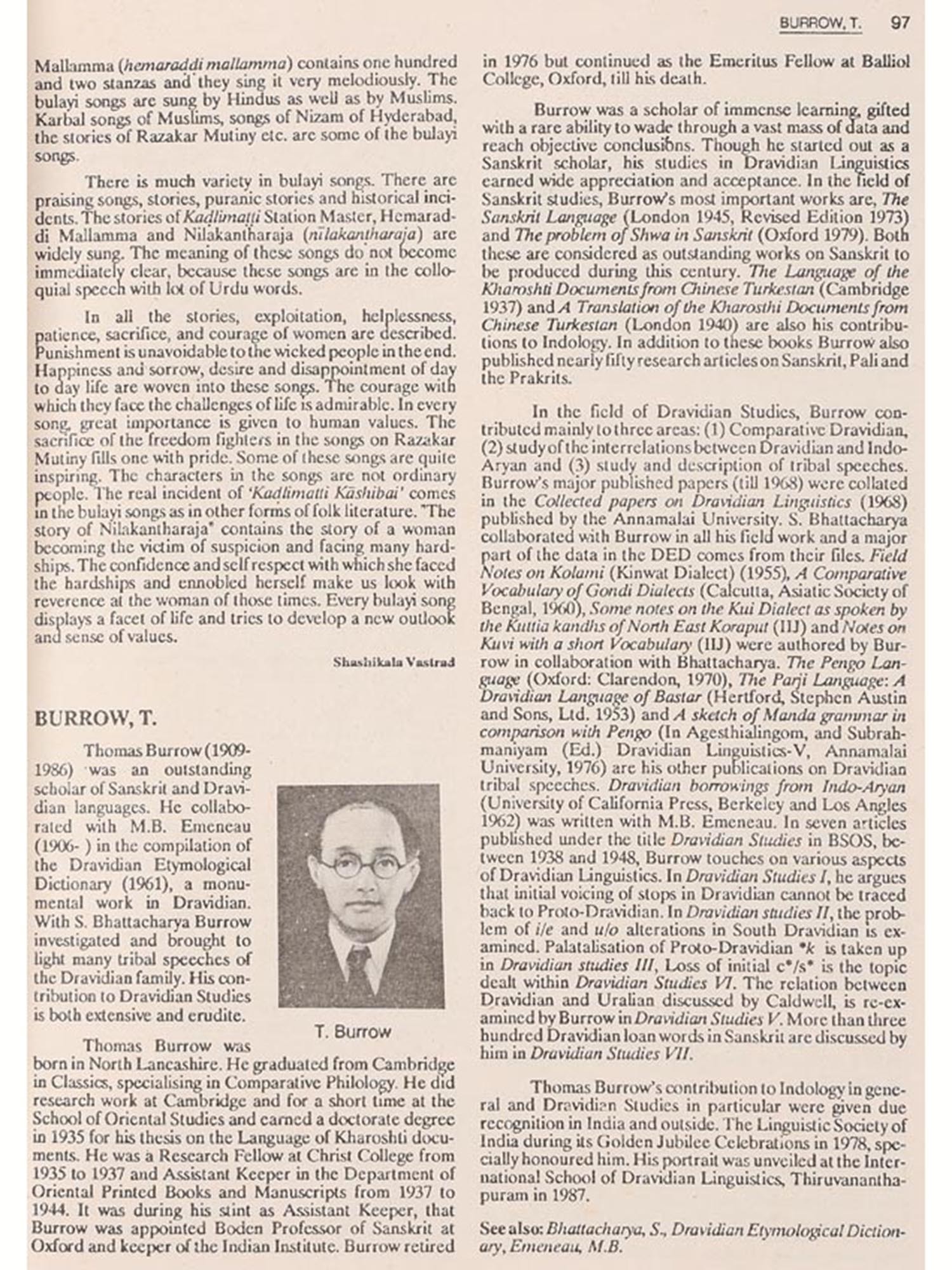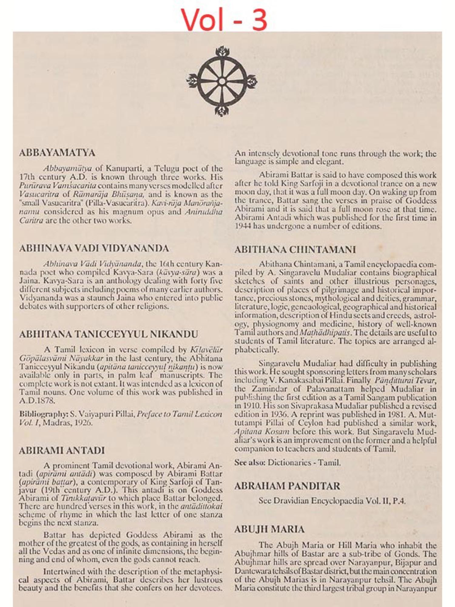 Justification for a Dravidian Encyclopaedia is not far to seek. Even knowledgeable administrators and public men are surprised to know that one fourth of the population in India speak one or the other Dravidian languages, that Brahui, one of the Dravidian languages is spoken in Pakistan, Afghanistan, Iran and in the southern borders of the USSR by a sizable number (about six lakhs), that remnants of the tribal population of the Dravidian family are found in the northern states of Madhya Pradesh, Orissa, West Bengal, Bihar, Maharashtra and Gujarat and that even Nepal has a Dravidian tribe called Jangar