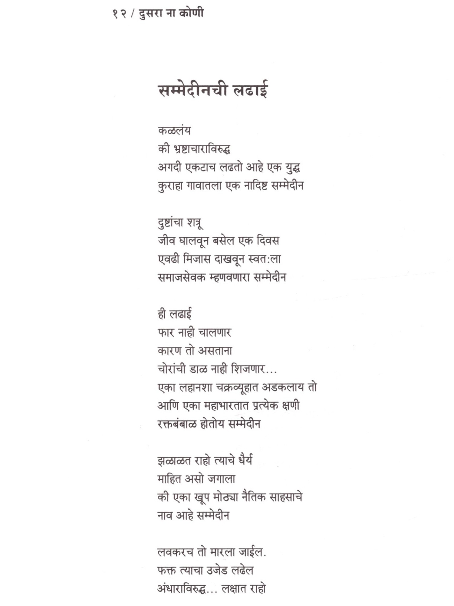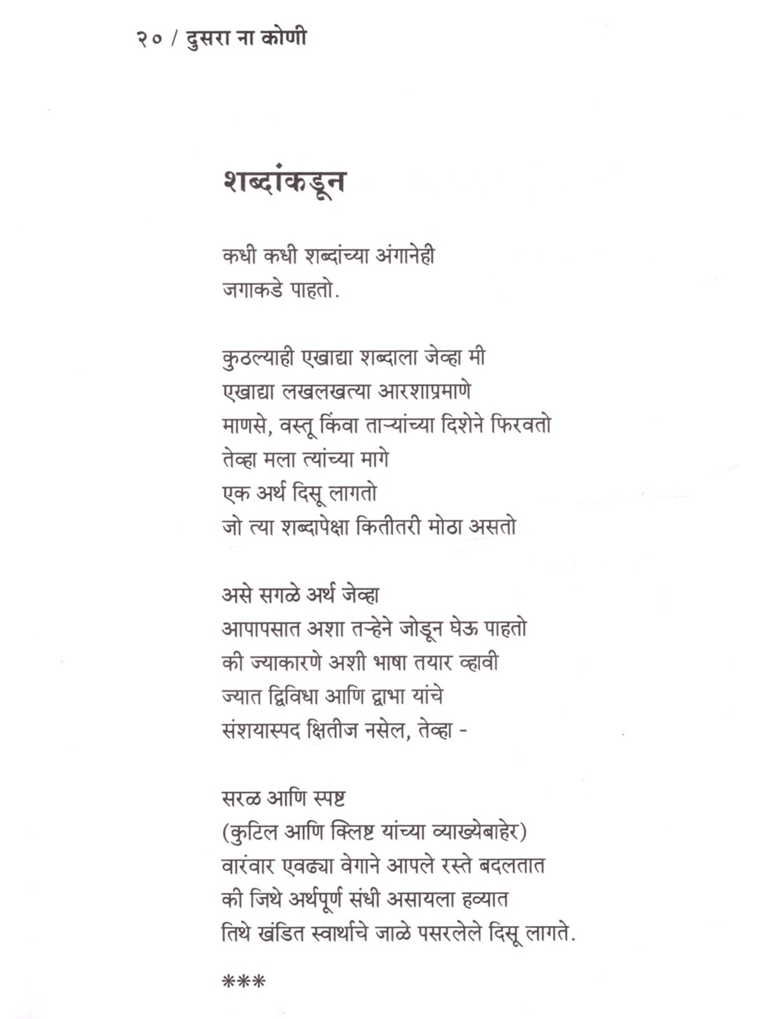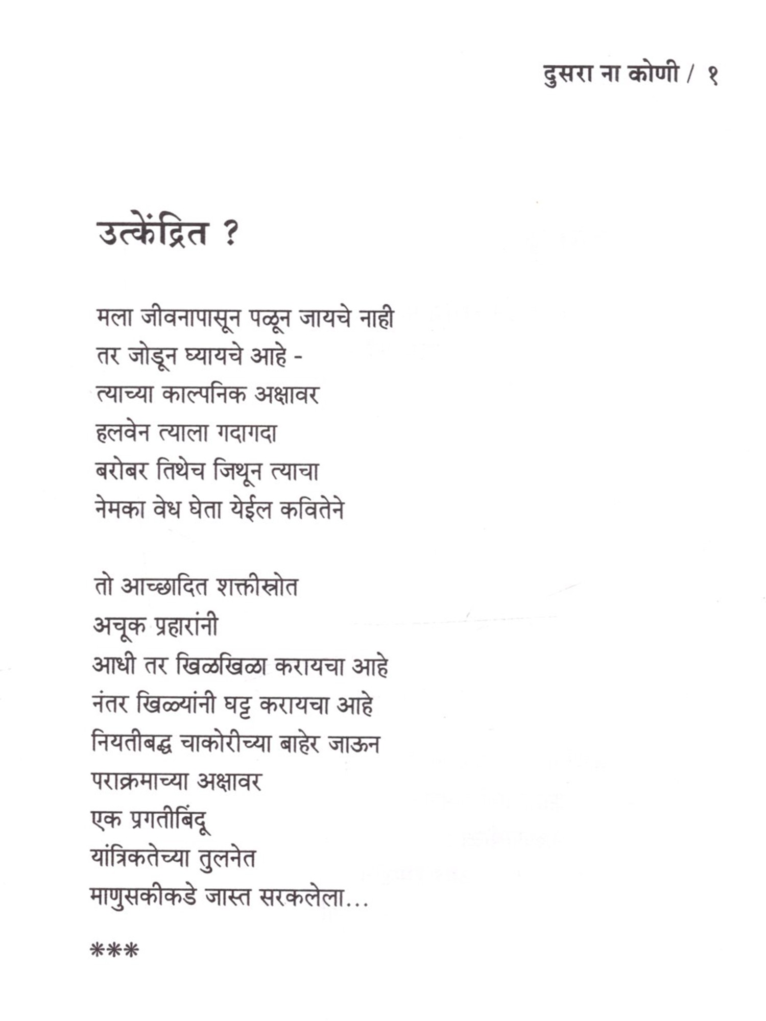 दुसरा ना कोणी: Dusra Na Koni (Sahitya Akademi Award-Winning Poetry collection Koi Doosra Nahin)