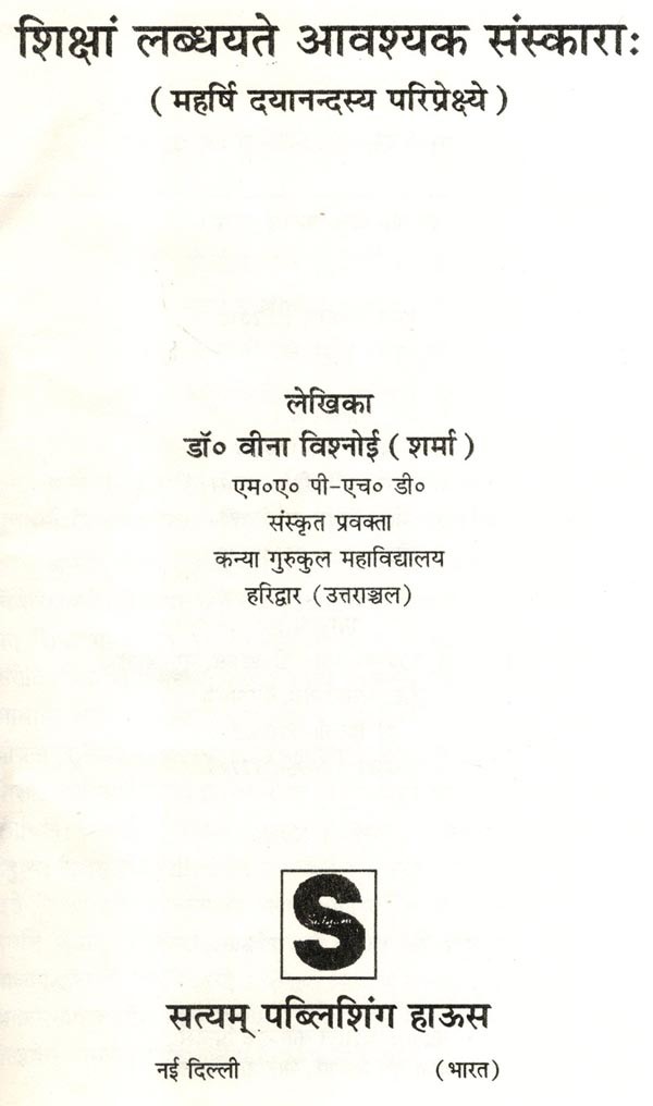 शिक्षां लब्धयते आवश्यक संस्काराः- Education Provides the Necessary Rituals- In the Perspective of Maharshi Dayananda