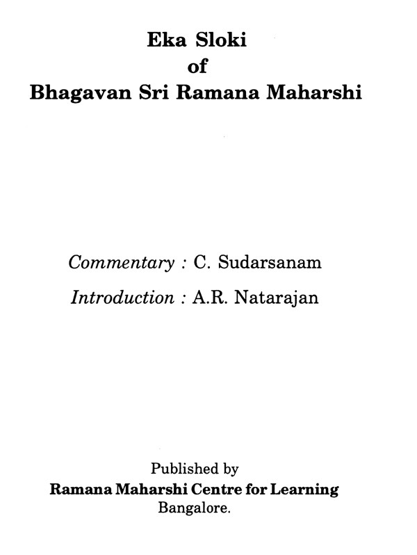 Eka Sloki of Bhagavan Sri Ramana Maharshi
