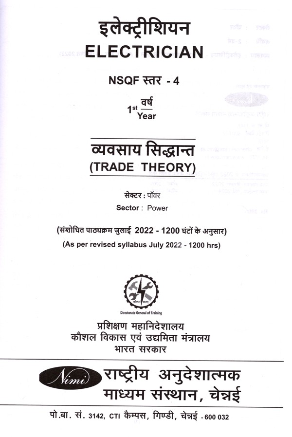 इलेक्ट्रिशियन: Electrician (Trade Practical, NSQF Level-4, 1st. Year , As Per Revised Syllabus July 2022-1200 hrs)