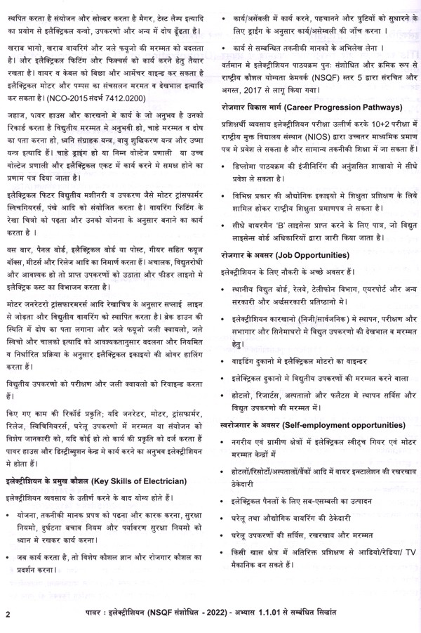 इलेक्ट्रिशियन: Electrician (Trade Practical, NSQF Level-4, 2nd. Year, As Per Revised Syllabus July 2022-1200 hrs)