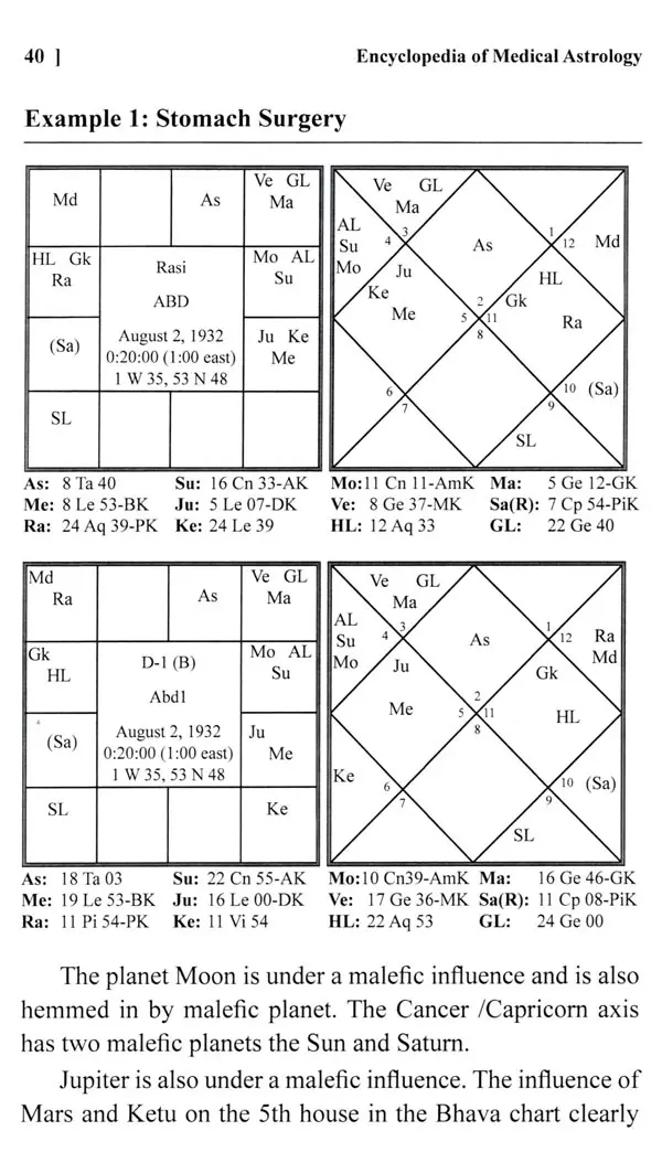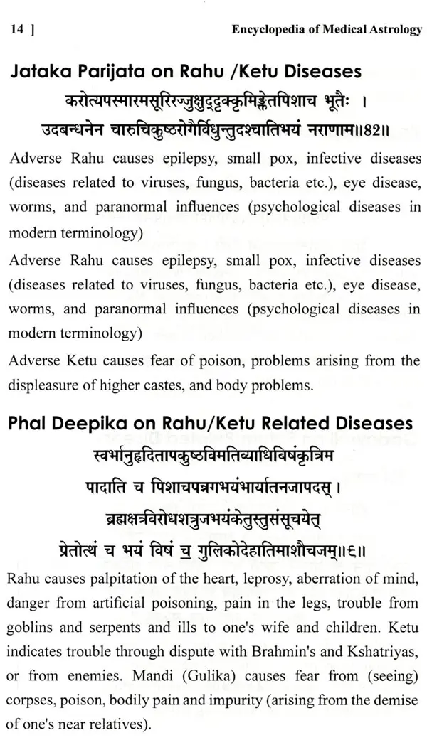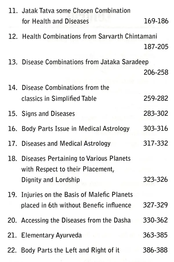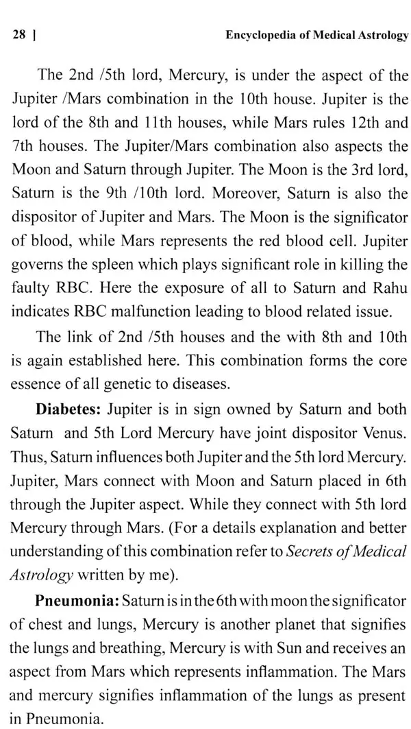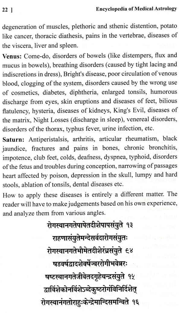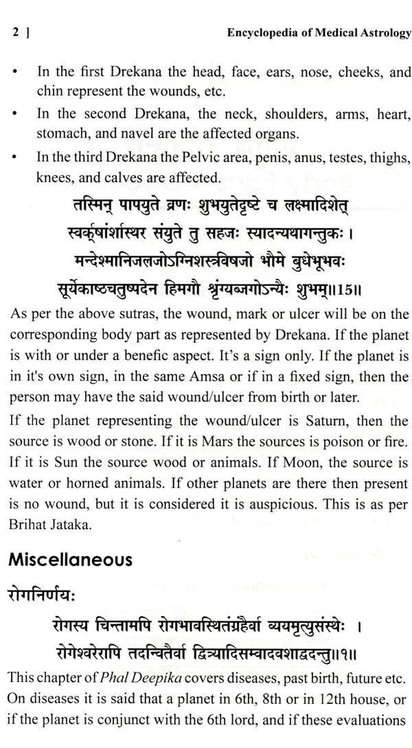 ENCYCLOPEDIA OF MEDICAL ASTROLOGY This book provides a clear and simple understanding of basic Ayurvedic terminology and its application in classical Vedic astrology. Using straightforward language, along with examples, illustrations, and images, it explains how to interpret body parts and systems through the lens of Vedic astrology using easy-to-follow anatomy visuals. The book brings together many of the Sutras related to Medical Astrology as found in various Vedic classics such as BPHS, Sarvartha Chintamani, Jataka Tattva, Prashna Marga, Shambhu Hora Prakash, Daivagya Bharanam, Veeramsimhlokan, Bhavarth Ratnakar, and others. The second part of the book contains example charts, showcasing combinations of almost all known diseases in an easy-to-understand format. This makes it an essential resource for anyone interested in studying and practicing Medical Astrology. The author, with over two decades of research, experience, observation, and practice, has compiled this book for astrologers, seekers, and enthusiasts alike. Their previous book on Medical Astrology was widely acclaimed and reviewed as the best book on the subject in India.