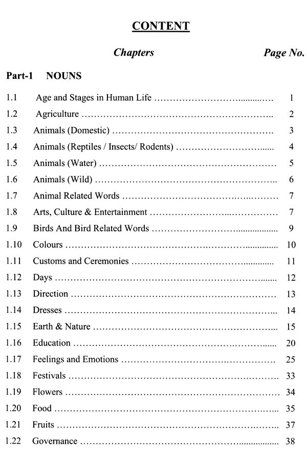 The vocabulary is divided into 42 semantic subgroups for the category of Nouns and 6 grammatical types for the rest of the words other than Noun. These subgroups are in English alphabetic order. Within each category, words are also listed in English alphabetic order to make it user friendly to non-native language learners.