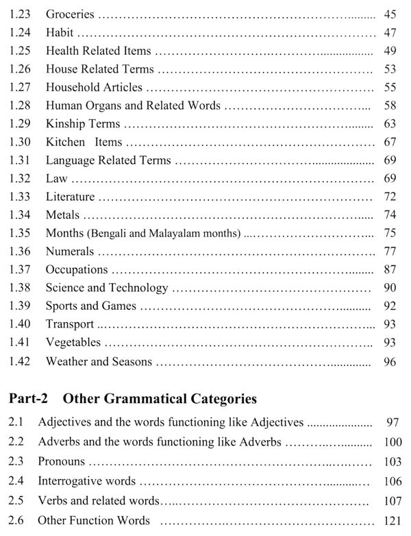 It is a dictionary of around 1860 basic words commonly used in our day-to-day life. Transliteration and phonemic transcriptions of the Bengali basic words and corresponding Malayalam words with transliteration and phonemic transcriptions are given side by side.