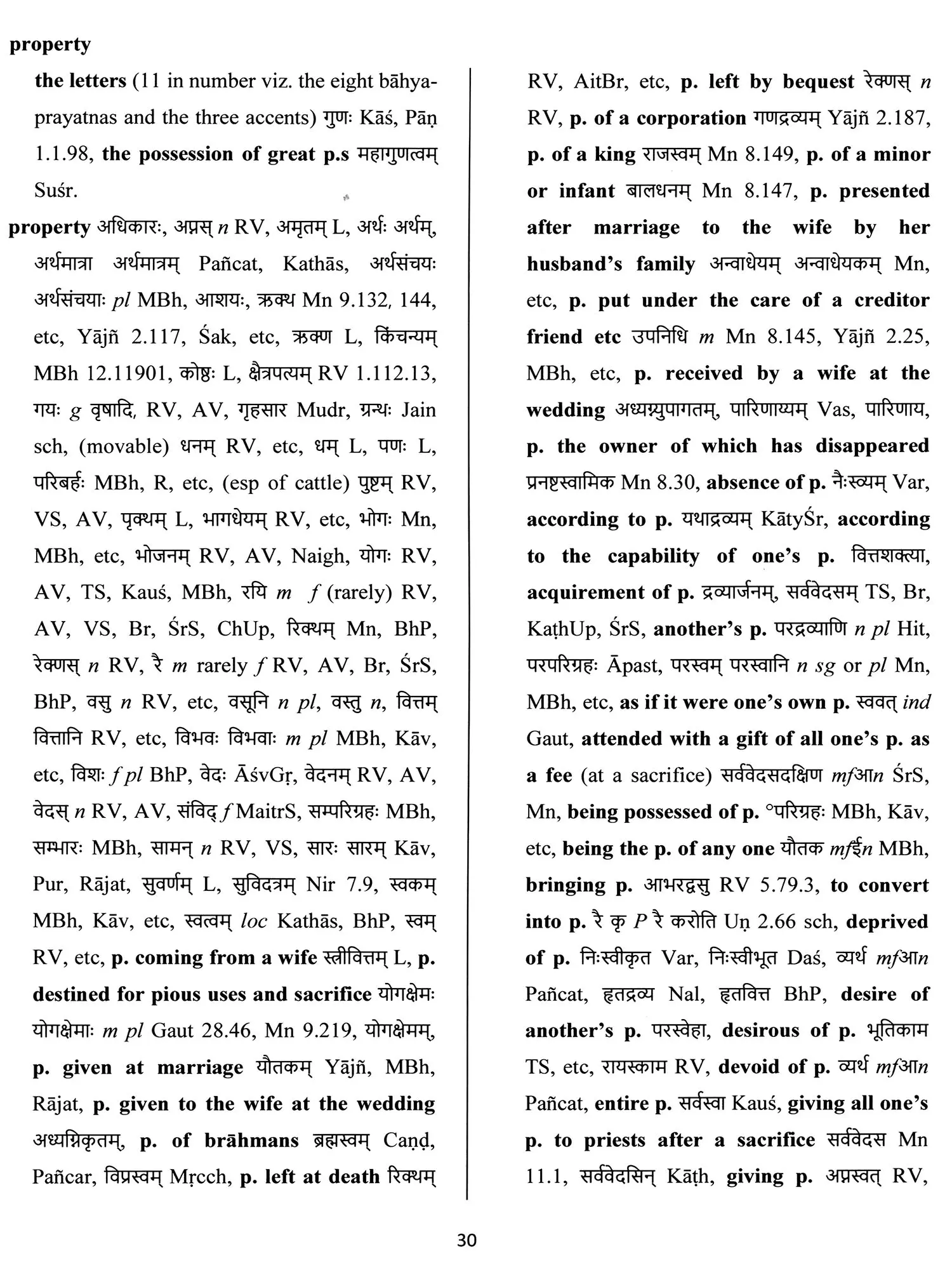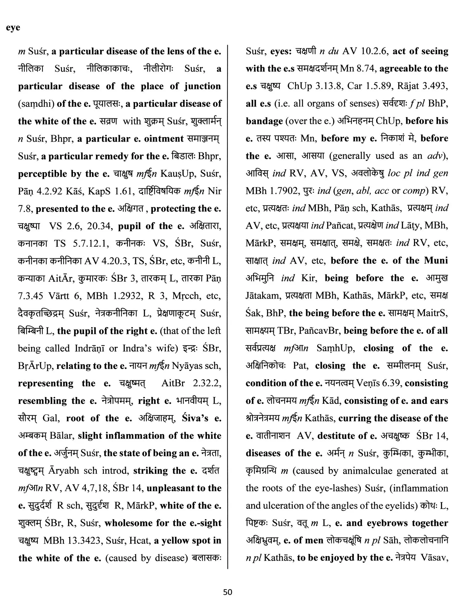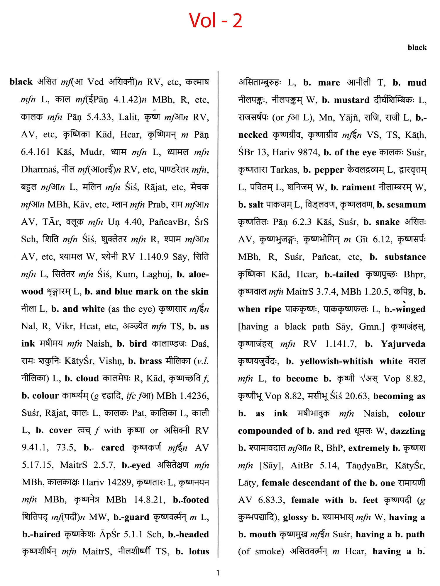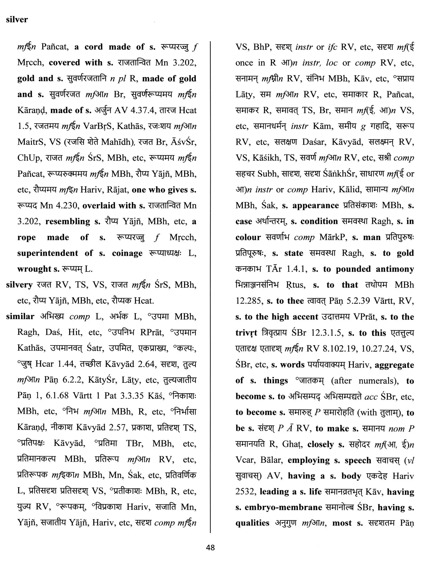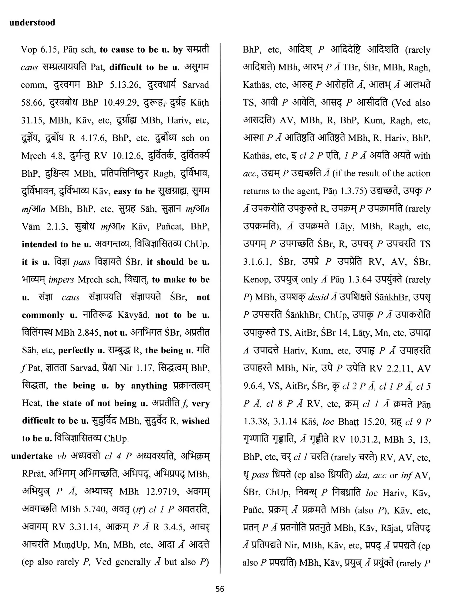 It is the first comprehensive English-Sanskrit dictionary of all the Sanskrit equivalents of an English word. It is all-inclusive and covers the complete linguistic heritage of Sanskrit from the Rgveda down to the eighteenth century. All the roots of the Dhatupathas have been incorporated so that the vast semantic spectrum of Sanskrit vis-a-vis a single English verb can be envisaged in its timeless efflorescence. The rare root du दु (Dhatupatha 22.46) occurs once in the Rigveda and survives in two words in Classical Sanskrit: dura 'distance' and duta 'envoy'. It means 'to go', Davayati 'to make distant' occurs in the Bhattikavya 2.55 which had vowed to use rare words and rare formations of grammar. This root travelled as far as Greece and MW cites three conjugated forms in Greek: duo, duno, deuomai. The innermost sanctum of a temple in Greece was aduton (garbhagrha), literally a place not to be entered (from a 'not' + dutos to be entered' from the root duein 'to enter'). It is spelt 'adytum' in English as a technical term in Greek archeology.