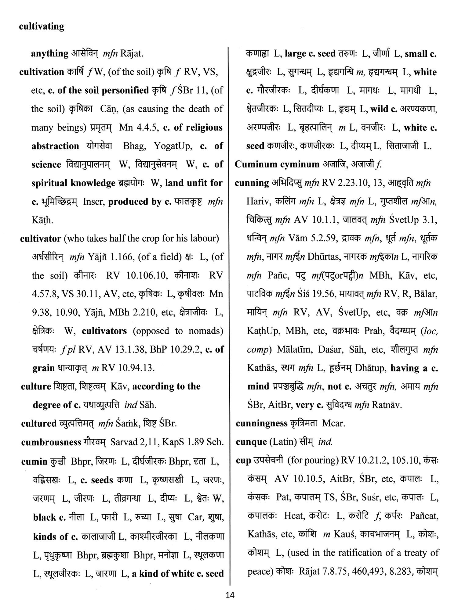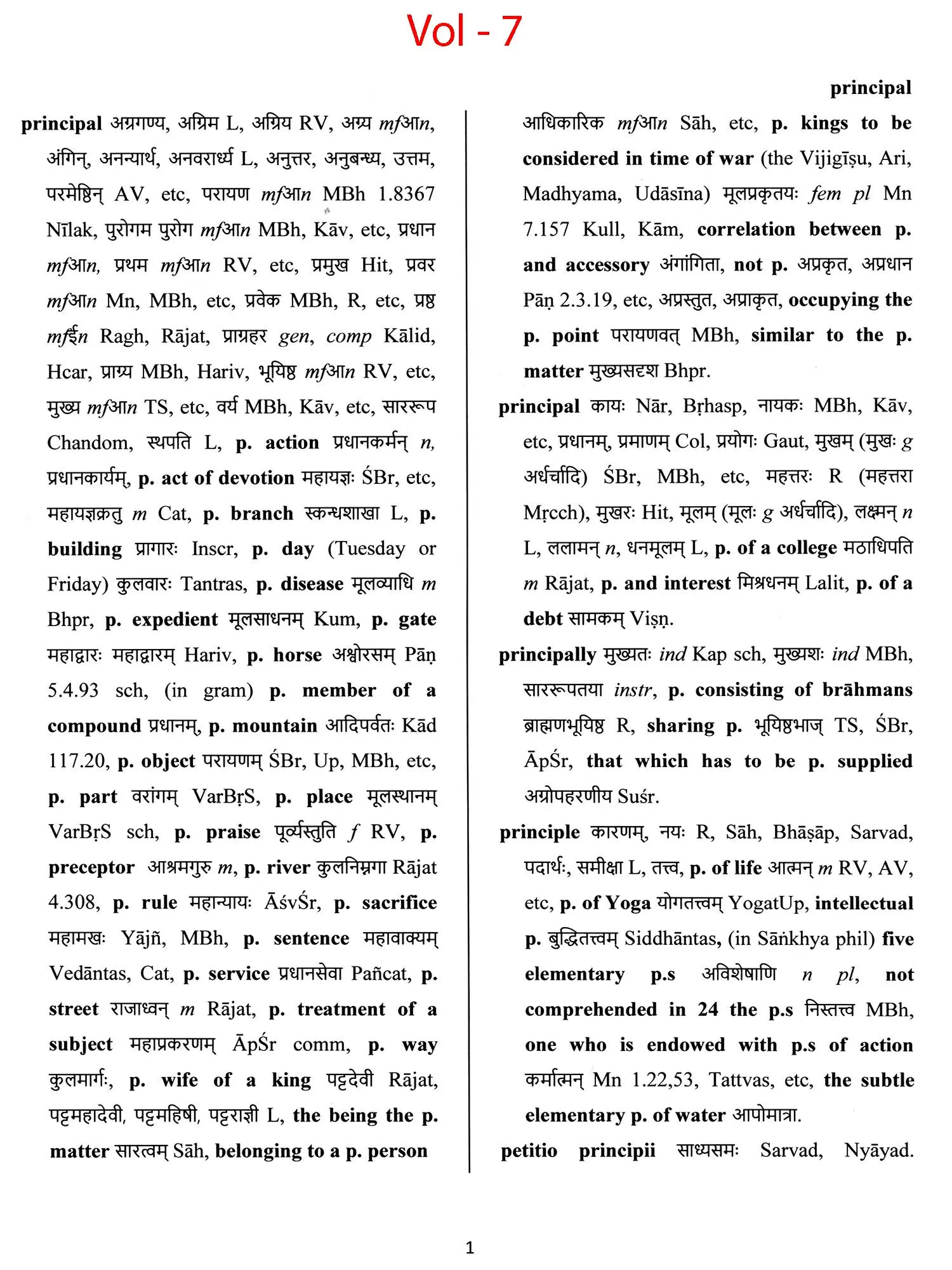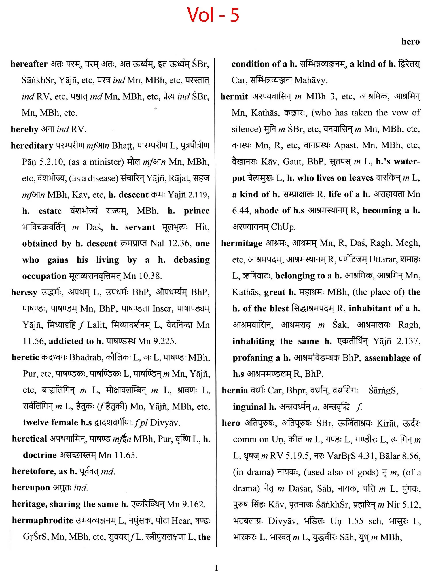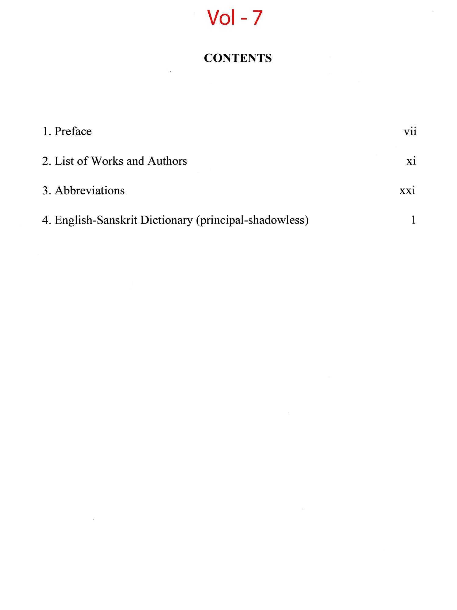 Sanskrit is rich in synonymy and this affluence is fully reflected in the overflow of Sanskrit words for any English vocable. Sir Monier Monier-Williams compiled his magnum opus, A Sanskrit-English Dictionary which appeared from the Clarendon Press in 1899. Prof. Raghu Vira compiled this English-Sanskrit Dictionary to include each and every item from Monier-Williams. This grandfather dictionary which will run to ten volumes was compiled as a basic component for the creation of new words in Indian languages. This dictionary with colossal number of Sanskrit nouns, verbs, adjectives etc. for every semanteme in English ensures that Indian languages will never stand in dearth of fullest expression. Scientific interest demands specialization and infinite ramification of technical terms. This dictionary is a vade mecum for creating terms for humanities as well as for the natural sciences.